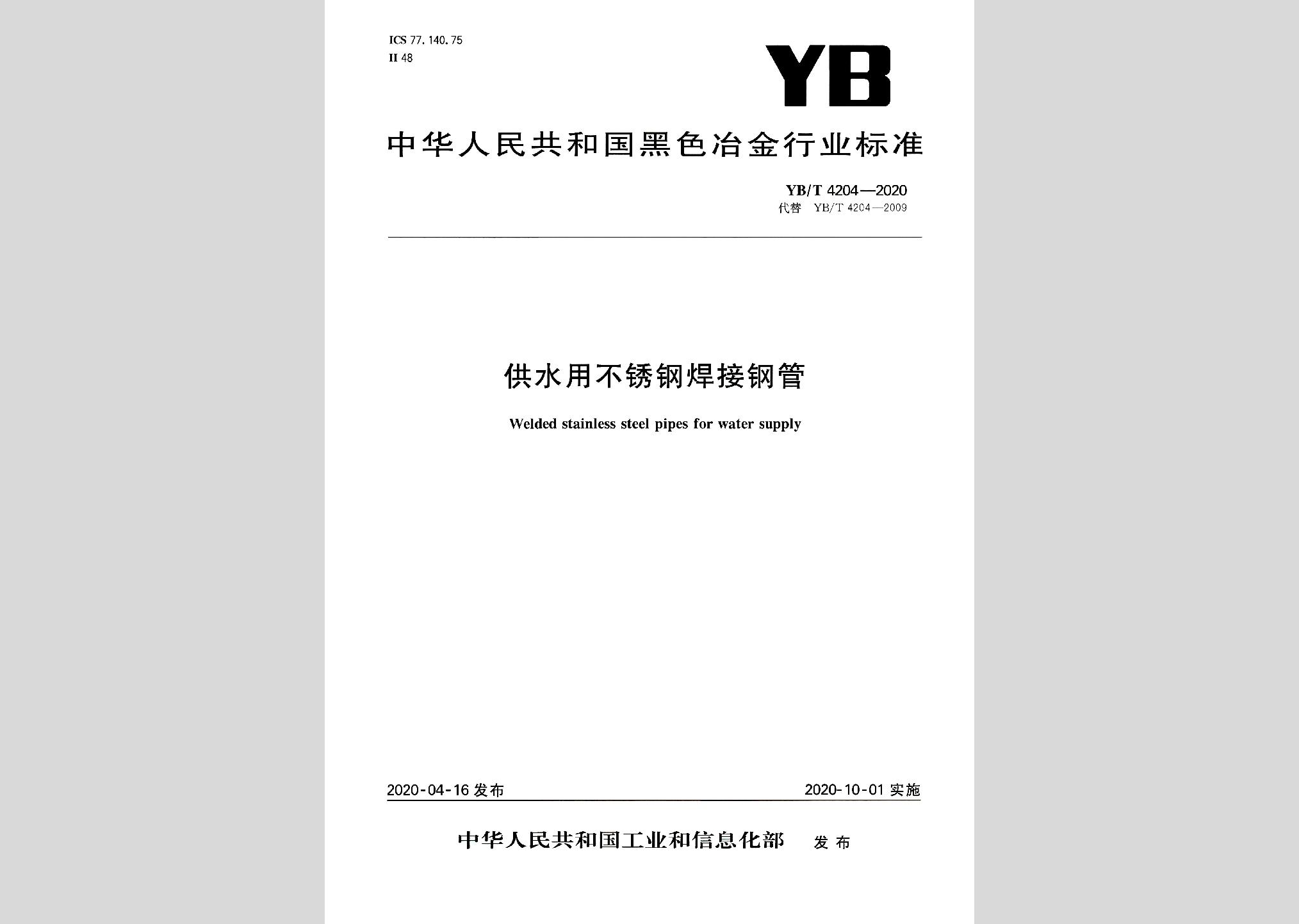 YB/T4204-2020:供水用不锈钢焊接钢管现行
