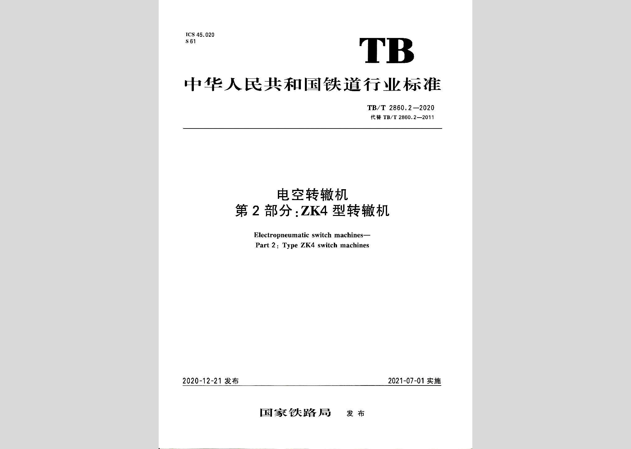 TB/T2860.2-2020:电空转辙机第2部分:ZK4型转辙机现行