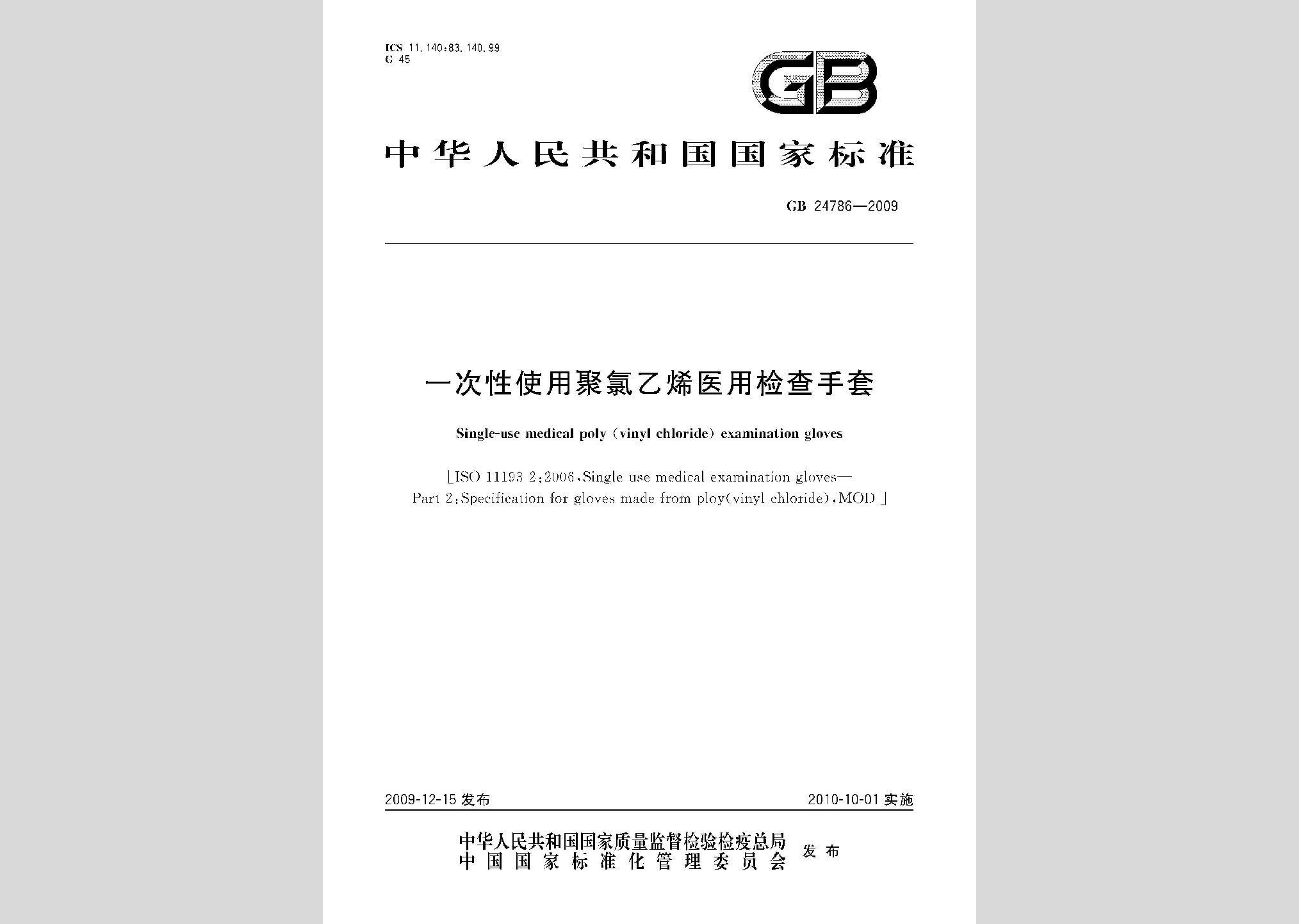 GB24786-2009:一次性使用聚氯乙烯医用检查手套现行