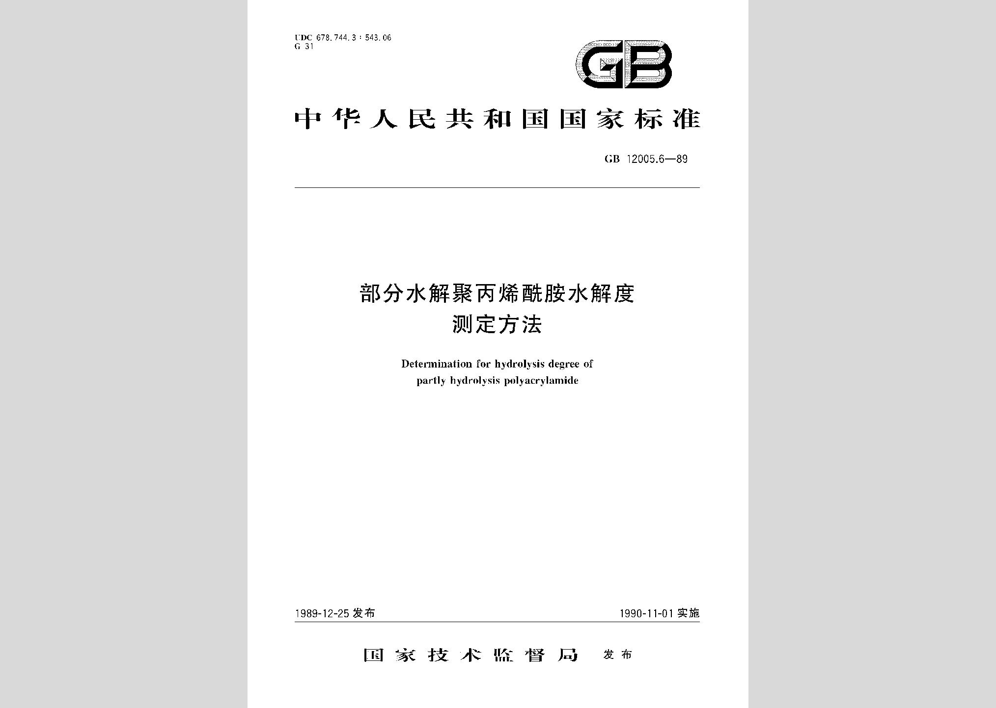 GB12005.6-89:部分水解聚丙烯酰胺水解度测定方法现行