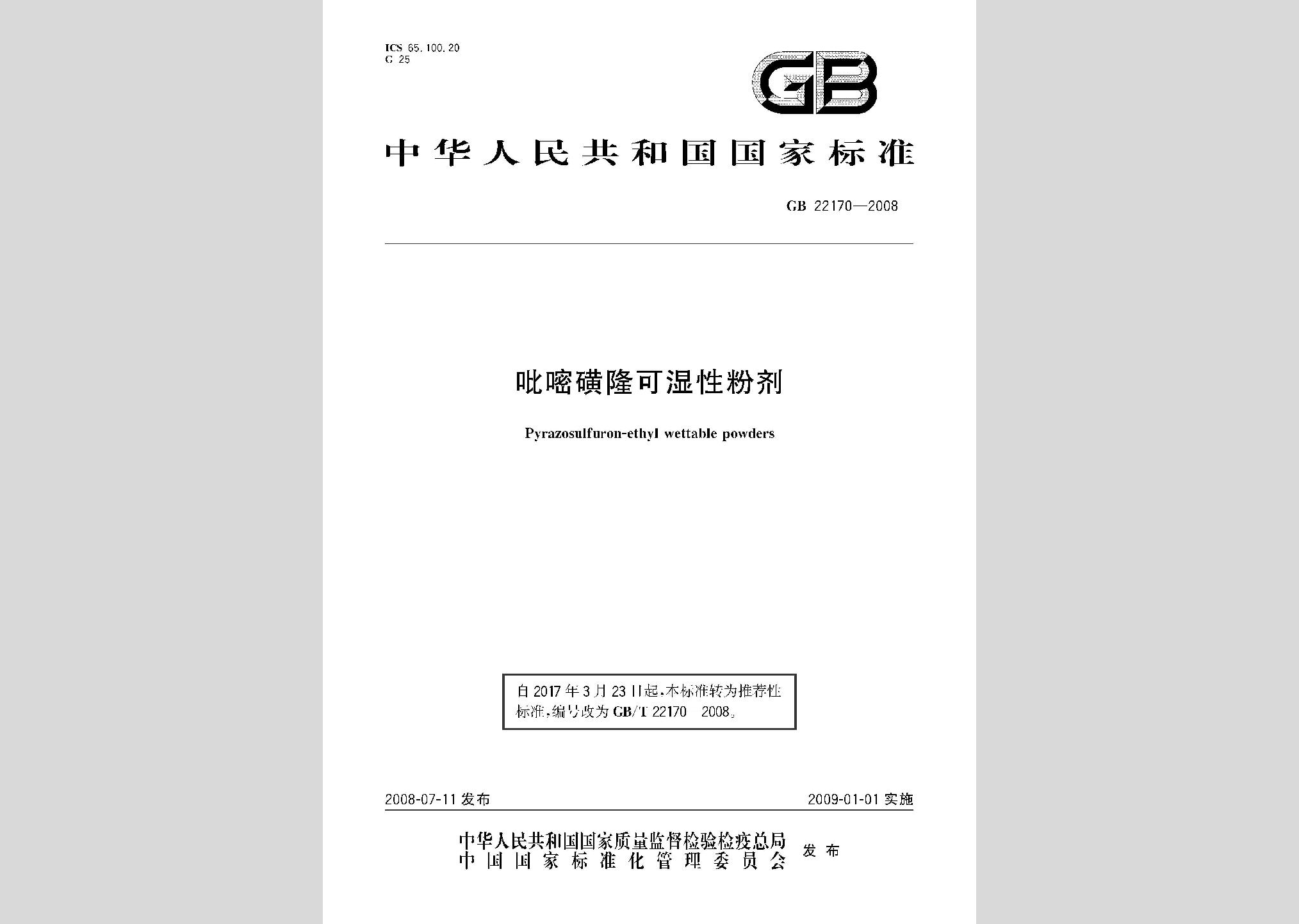 GB/T22170-2008:吡嘧磺隆可湿性粉剂现行