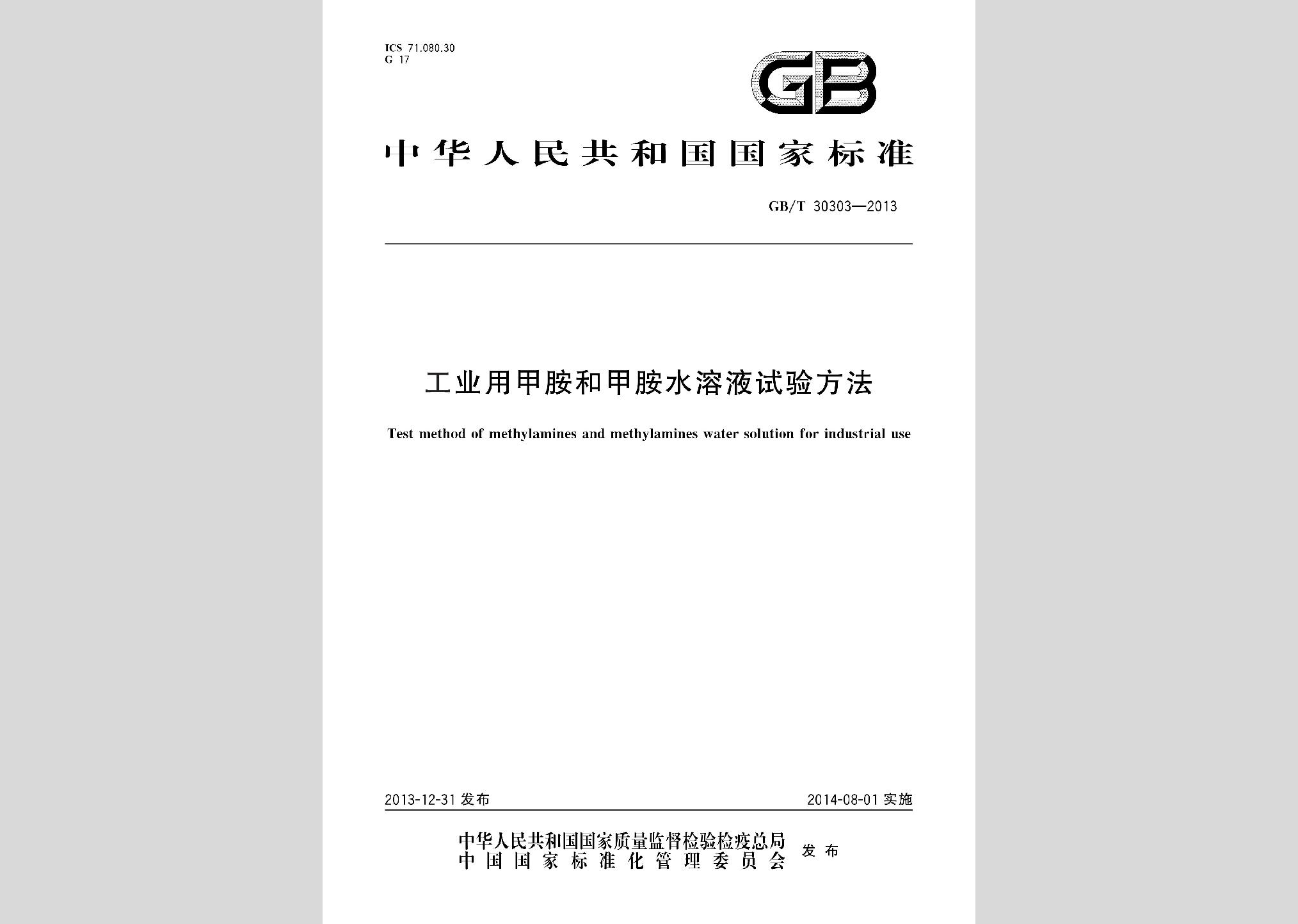 GB/T30303-2013:工业用甲胺和甲胺水溶液试验方法现行
