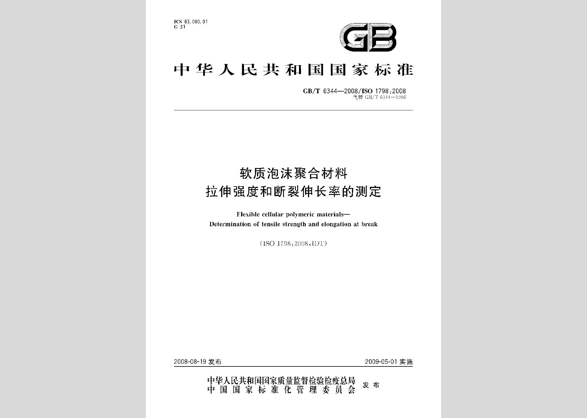GB/T6344-2008:软质泡沫聚合材料拉伸强度和断裂伸长率的测定现行
