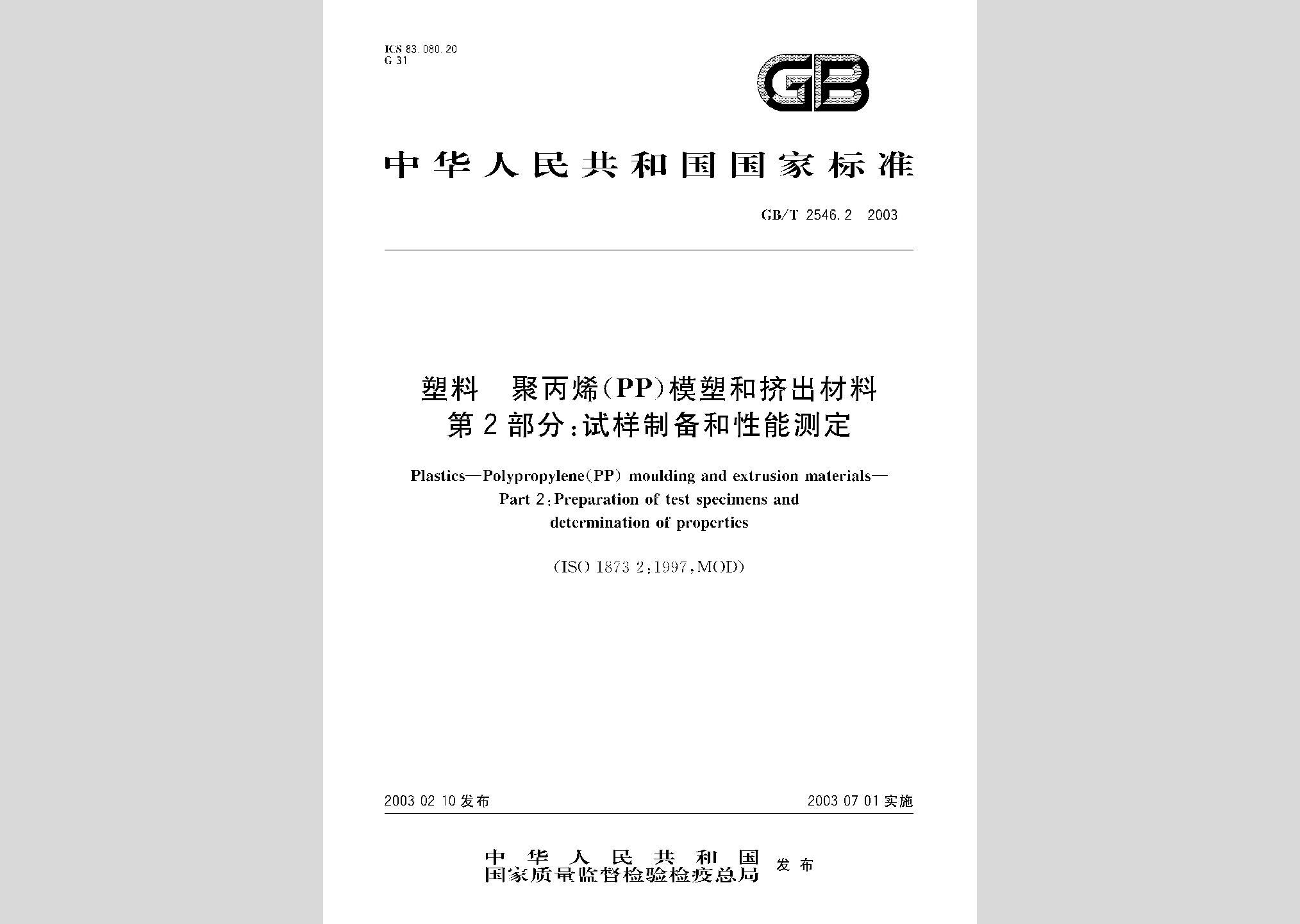 GB/T2546.2-2003:塑料聚丙烯(PP)模塑和挤出材料第2部分:试样制备和性能测定废止