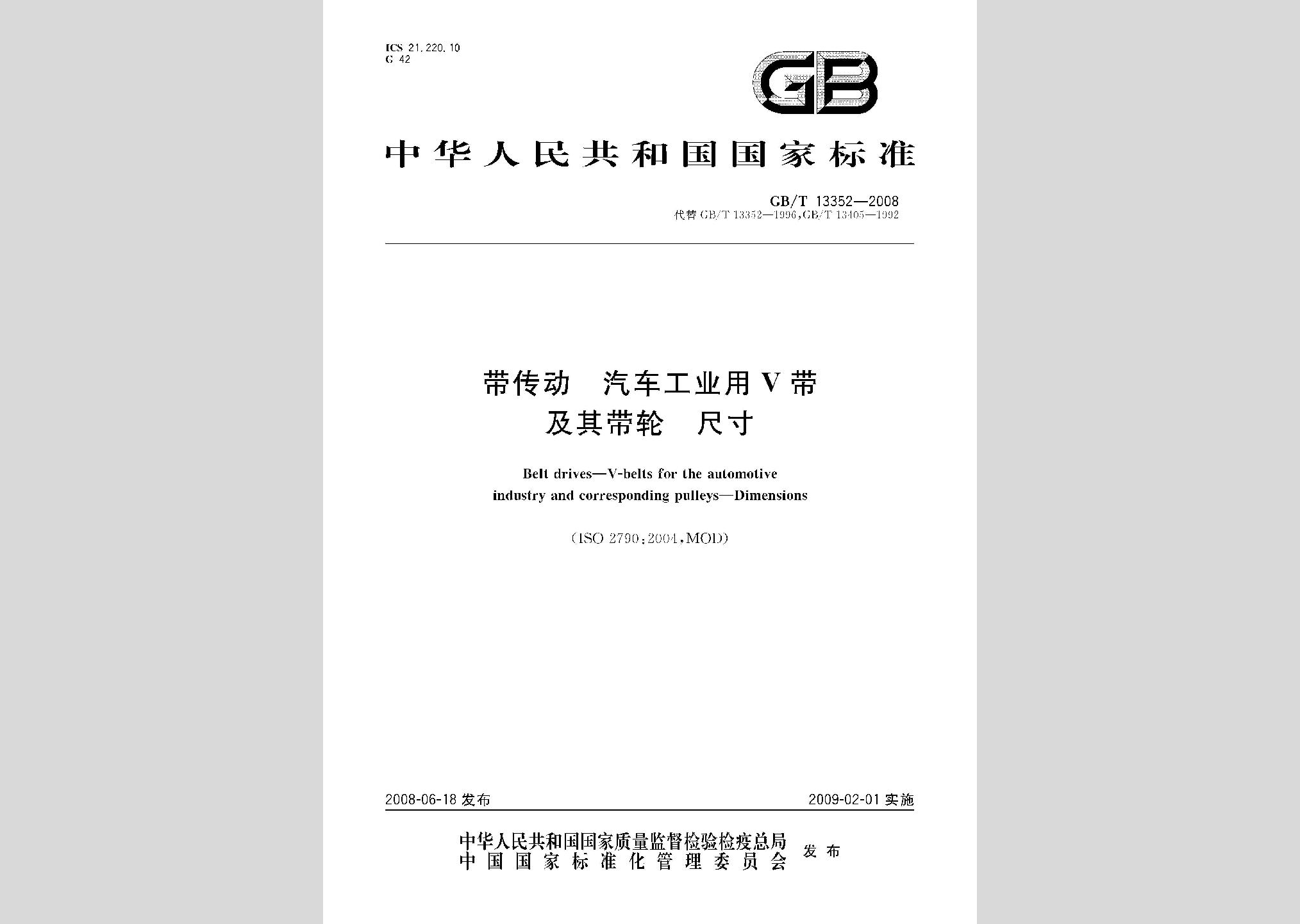 GB/T13352-2008:带传动汽车工业用V带及其带轮尺寸现行