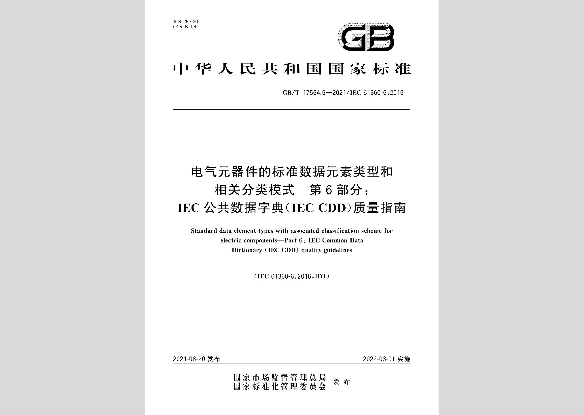 GB/T17564.6-2021:电气元器件的标准数据元素类型和相关分类模式第6部分:IEC公共数据字典(IEC CDD)质量指南现行