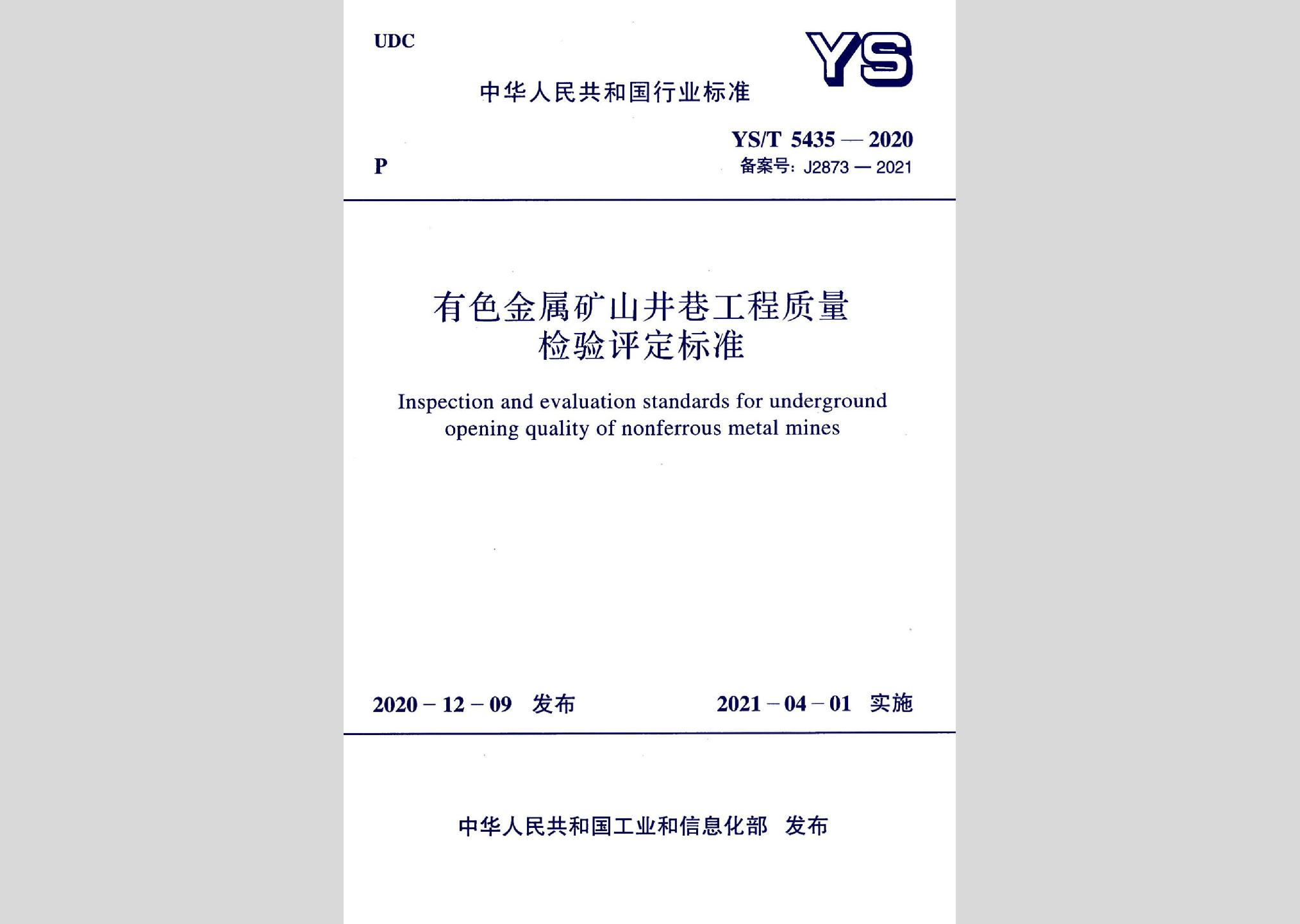 YS/T5435-2020:有色金属矿山井巷工程质量检验评定标准现行