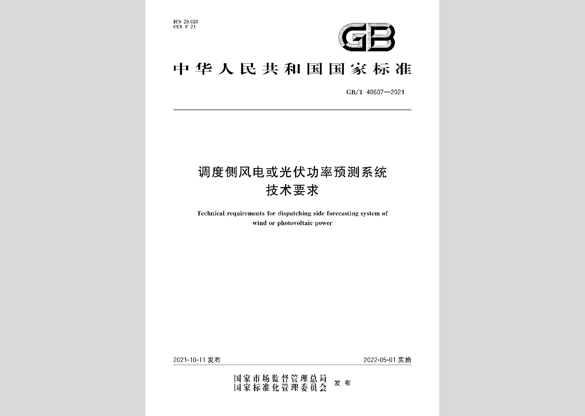 GB/T40607-2021:调度侧风电或光伏功率预测系统技术要求现行