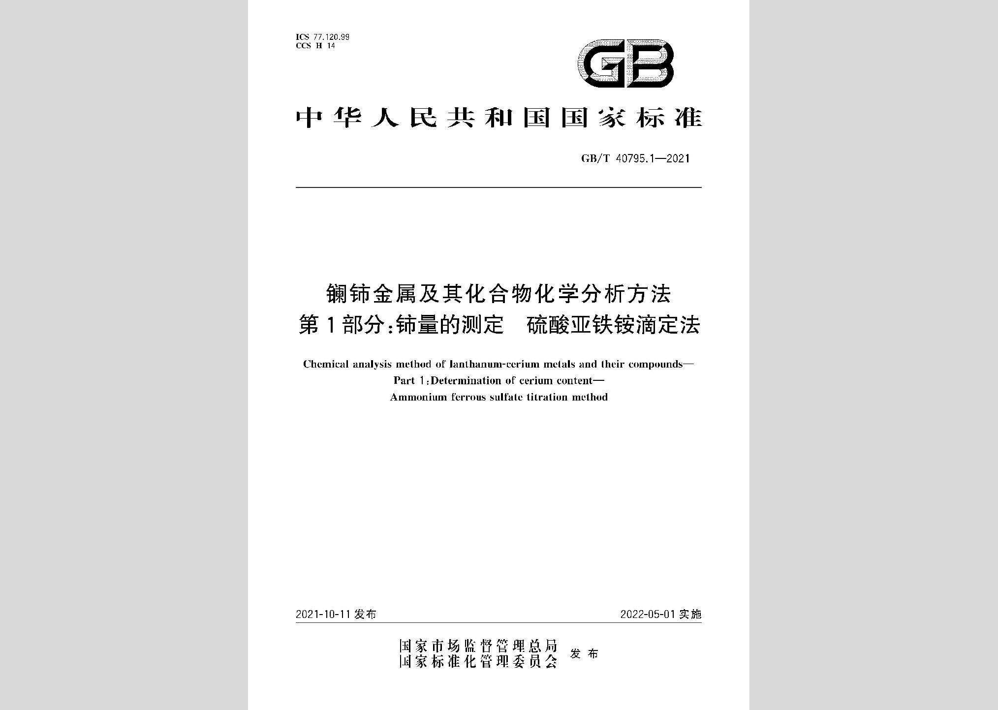 GB/T40795.1-2021:镧铈金属及其化合物化学分析方法第1部分:铈量的测定硫酸亚铁铵滴定法现行