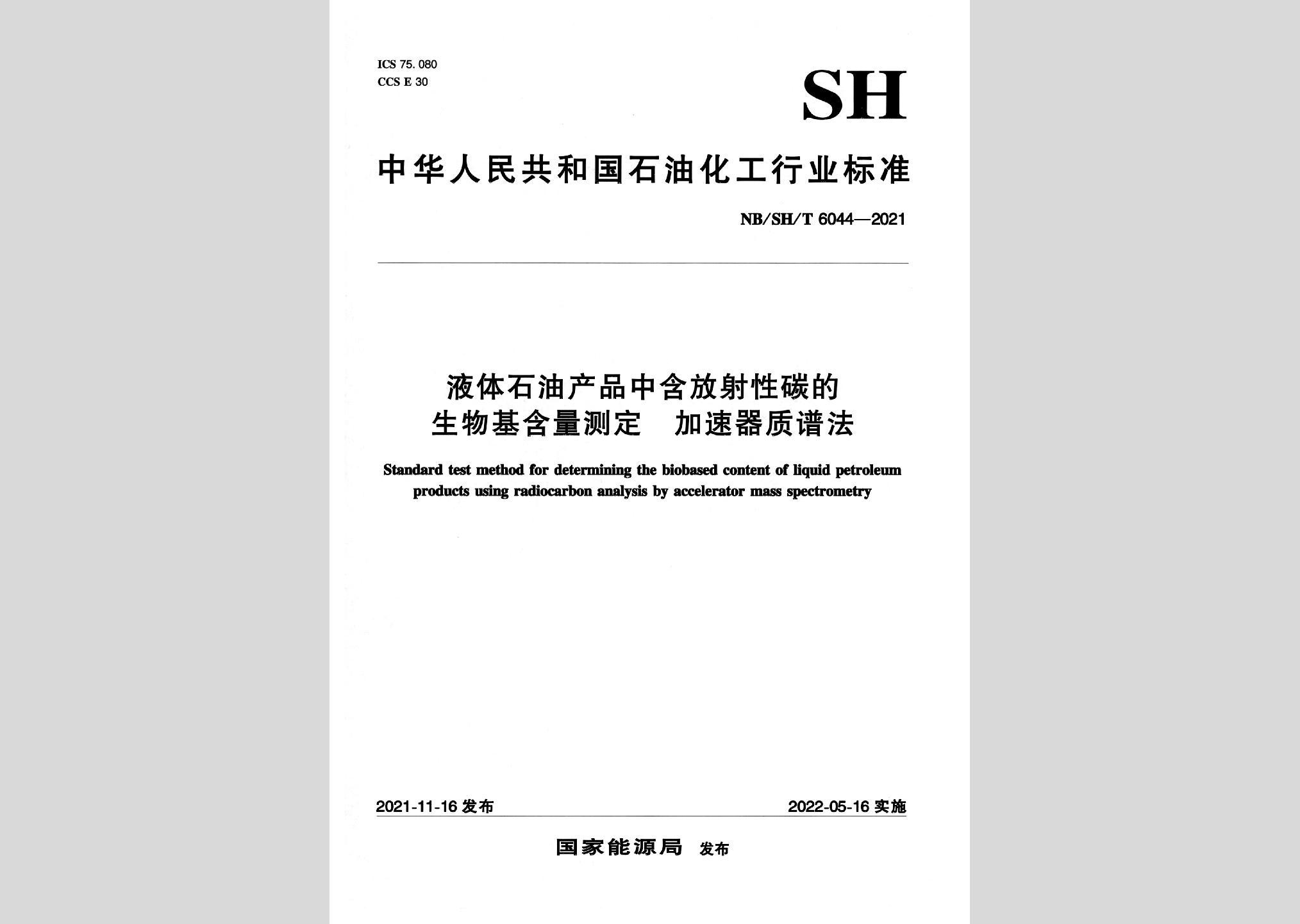 NB/SH/T6044-2021:液体石油产品中含放射性碳的生物基含量测定加速器质谱法现行