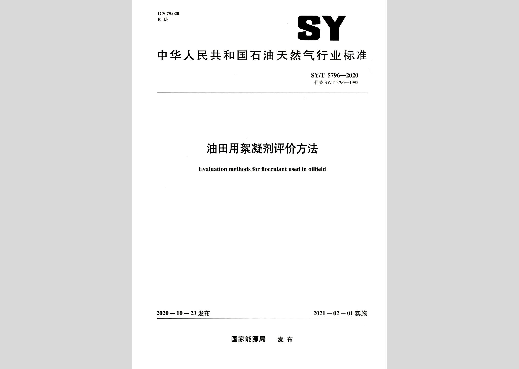 SY/T5796-2020:油田用絮凝剂评价方法现行