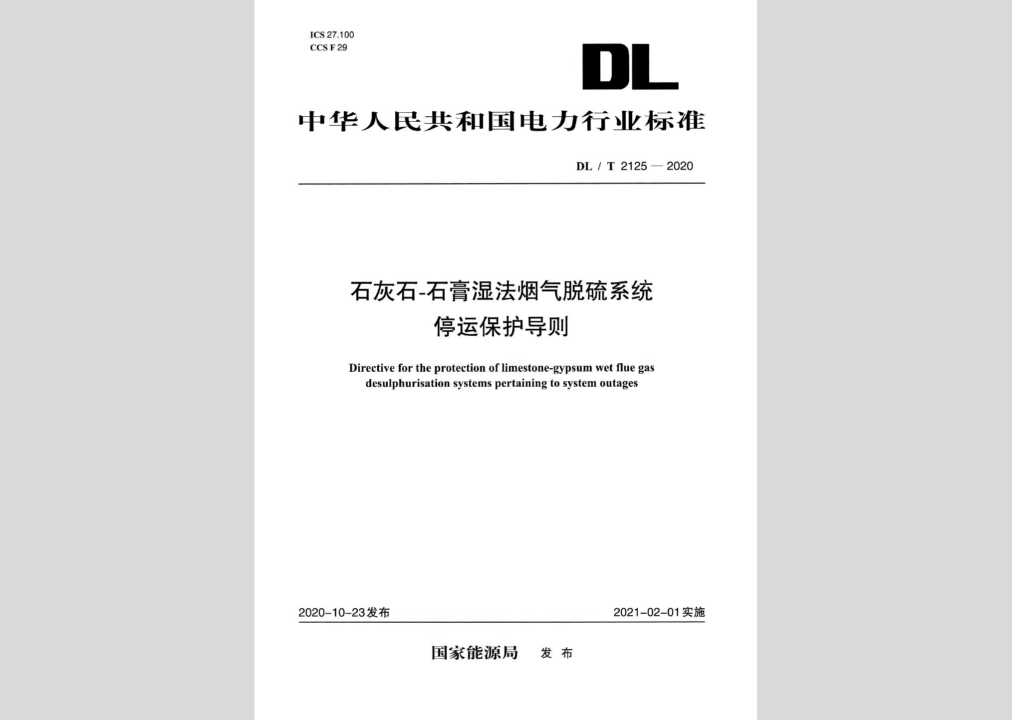 DL/T2125-2020:石灰石-石膏湿法烟气脱硫系统停运保护导则现行