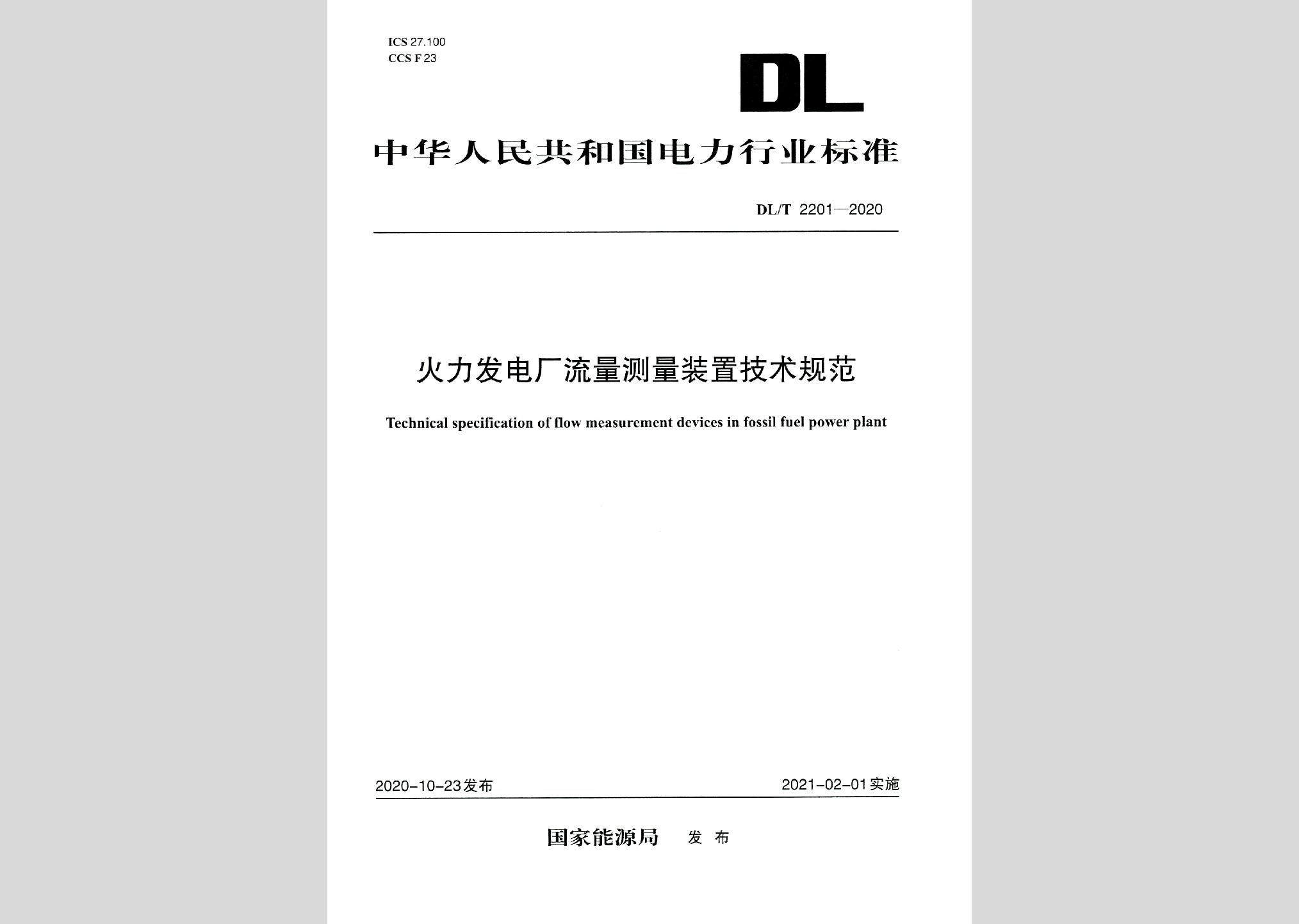 DL/T2201-2020:火力发电厂流量测量装置技术规范现行