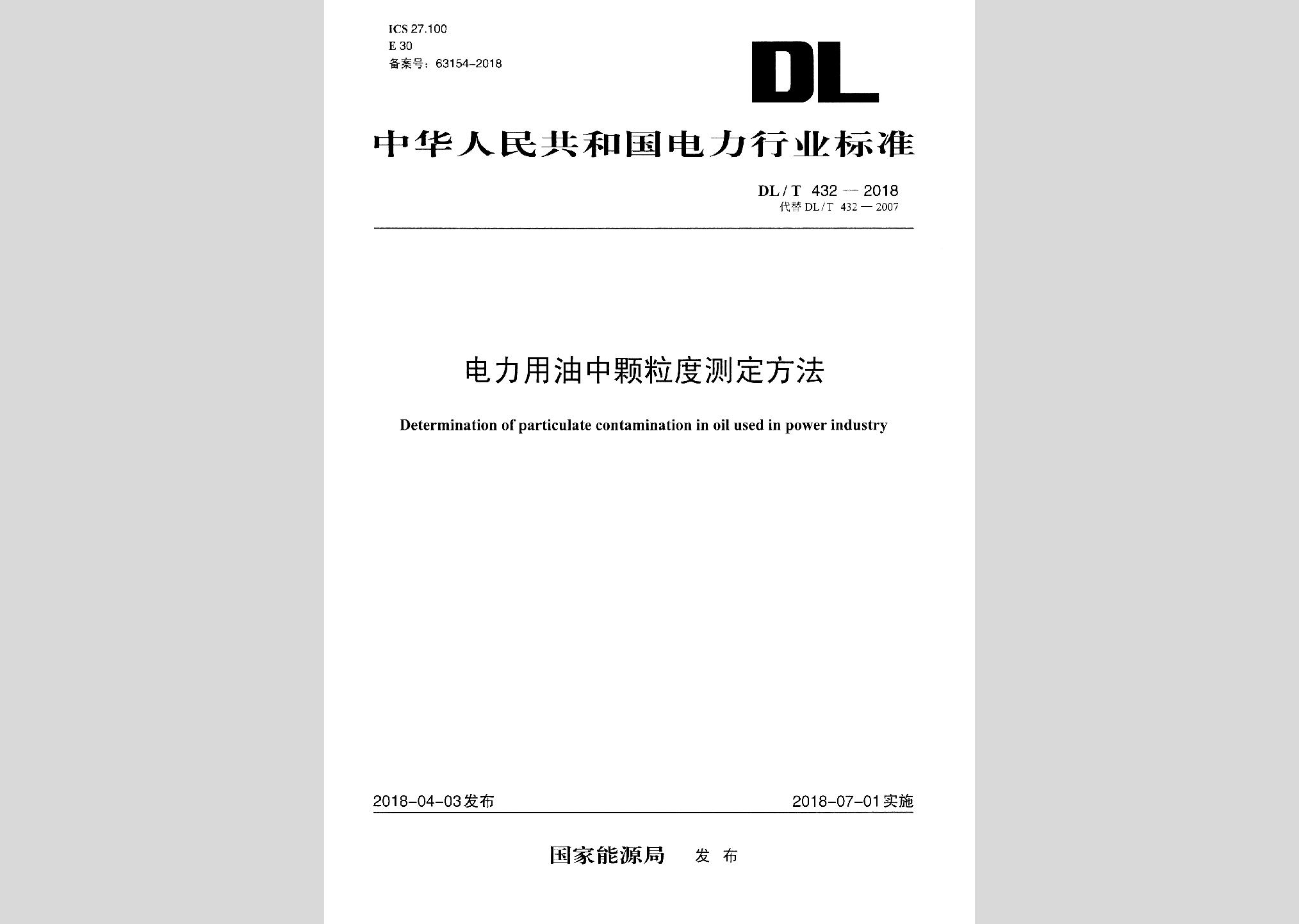 DL/T432-2018:电力用油中颗粒度测定方法现行