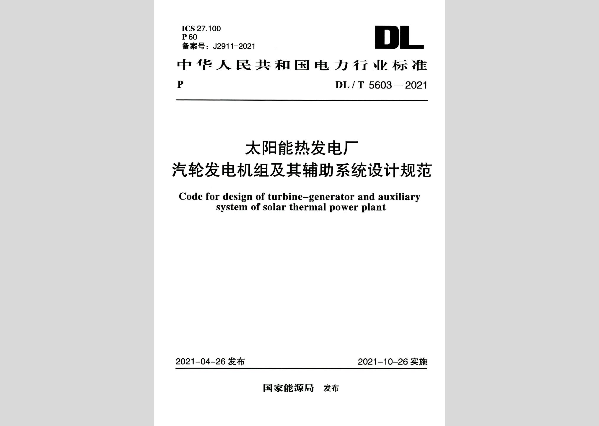 DL/T5603-2021:太阳能热发电厂汽轮发电机组及其辅助系统设计规范现行