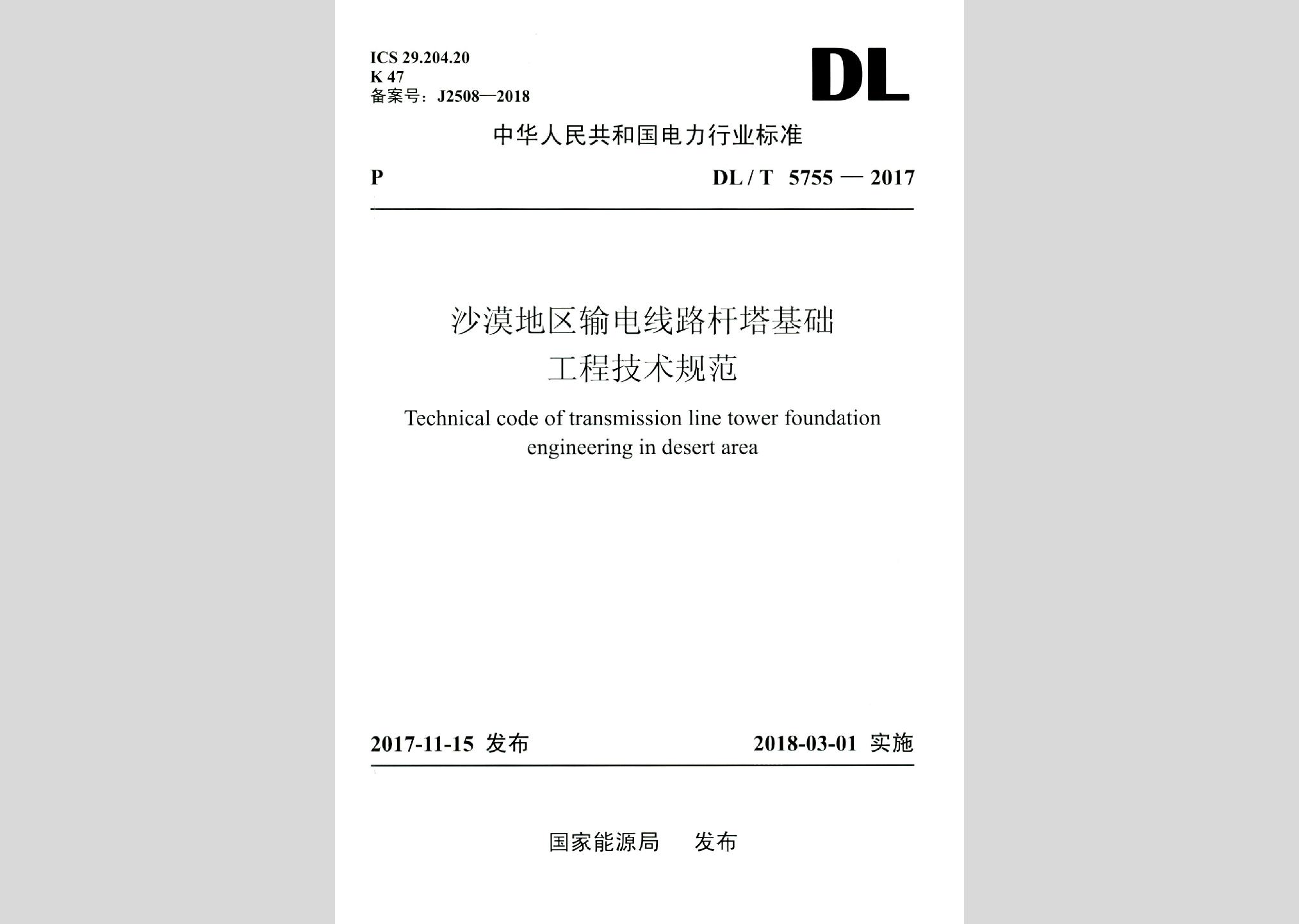 DL/T5755-2017:沙漠地区输电线路杆塔基础工程技术规范现行