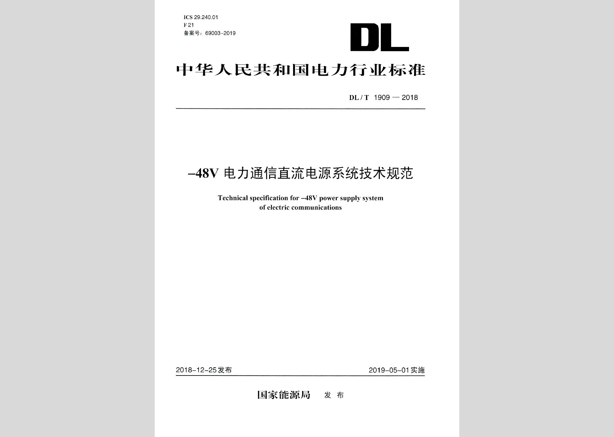 DL/T1909-2018:-48V电力通信直流电源系统技术规范现行