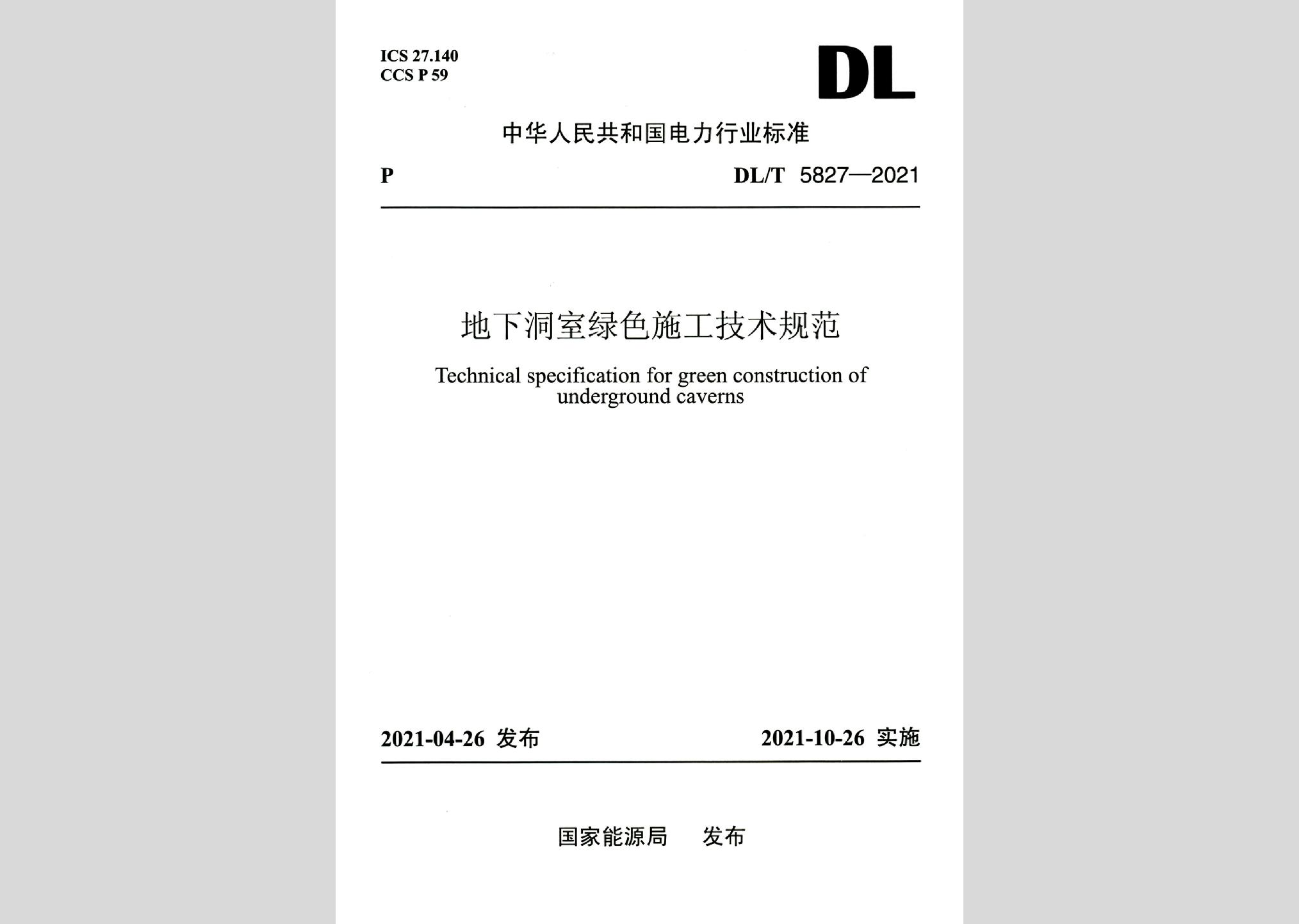 DL/T5827-2021:地下洞室绿色施工技术规范现行