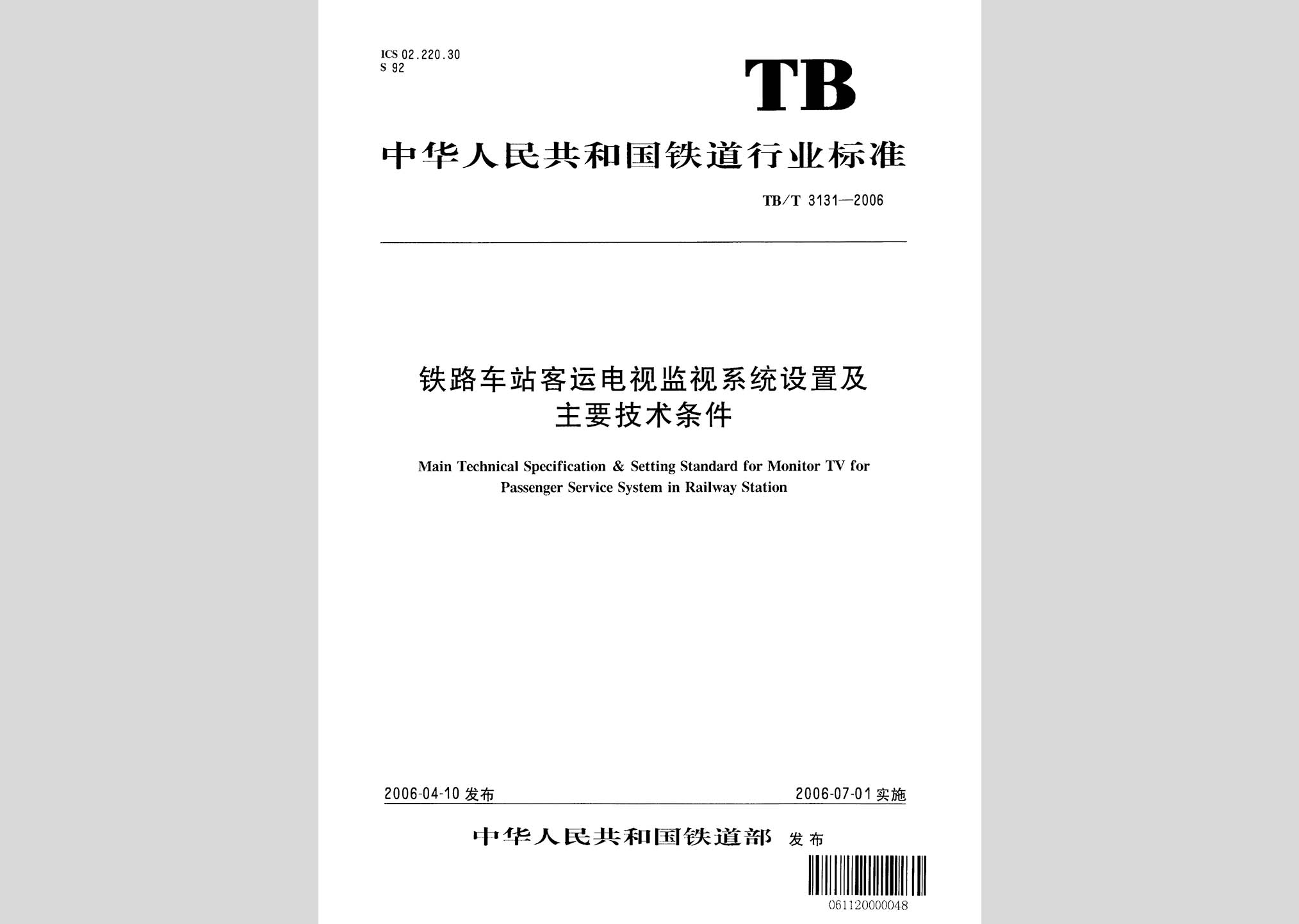 TB/T3131-2006:铁路车站客运电视监视系统设置及主要技术条件现行
