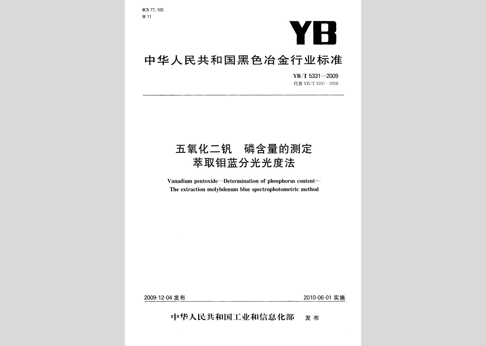 YB/T5331-2009:五氧化二钒 磷含量的测定 萃取钼蓝分光光度法现行
