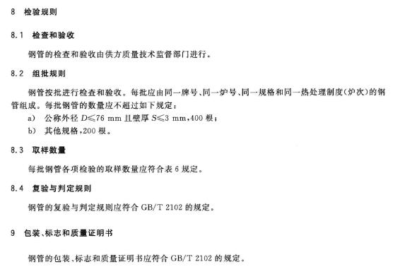 钢管应经热处理并酸洗交货。钢管的热处理制度应符合表4的规定。凡经整体磨、镗或经保护气氛热处理的钢管可不经酸洗交货。