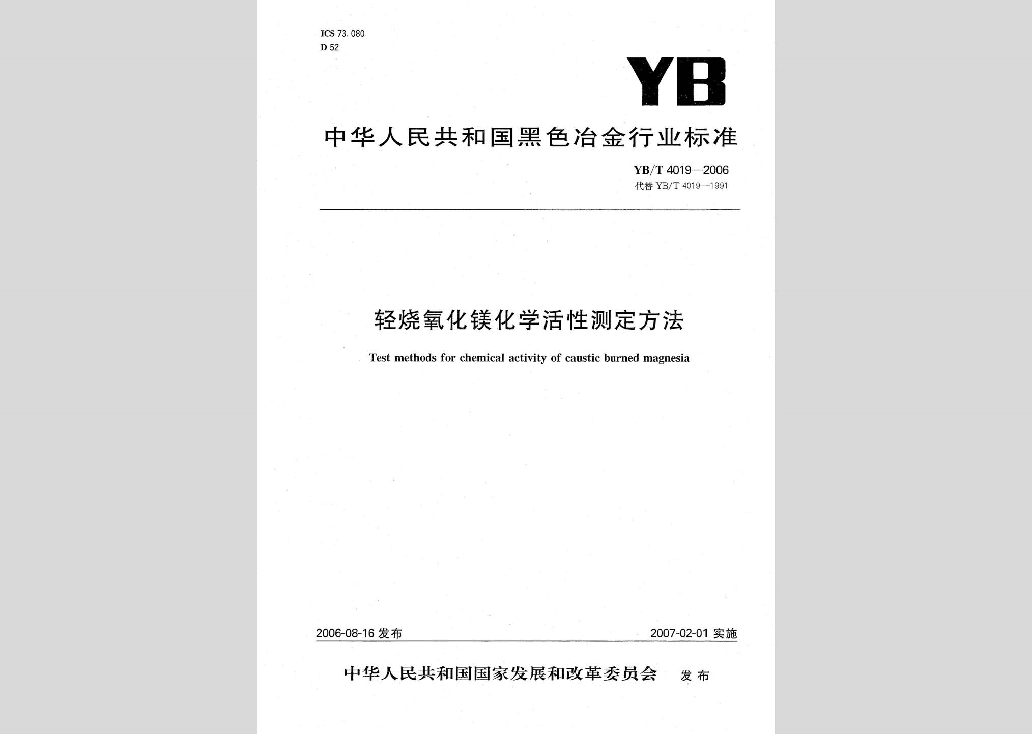 YB/T4019-2006:轻烧氧化镁化学活性测定方法废止