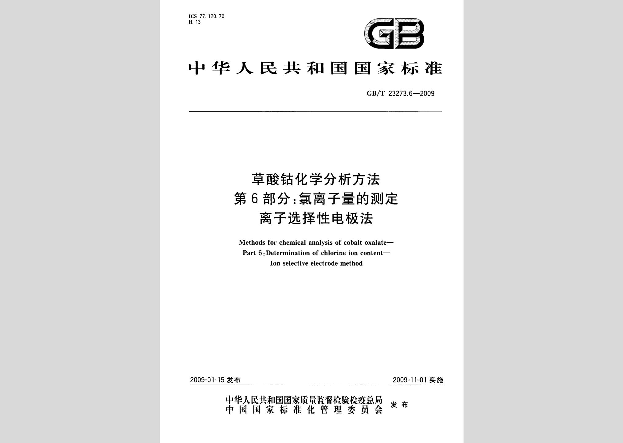 GB/T23273.6-2009:草酸钴化学分析方法 第6部分:氯离子量的测定 离子选择性电极法现行