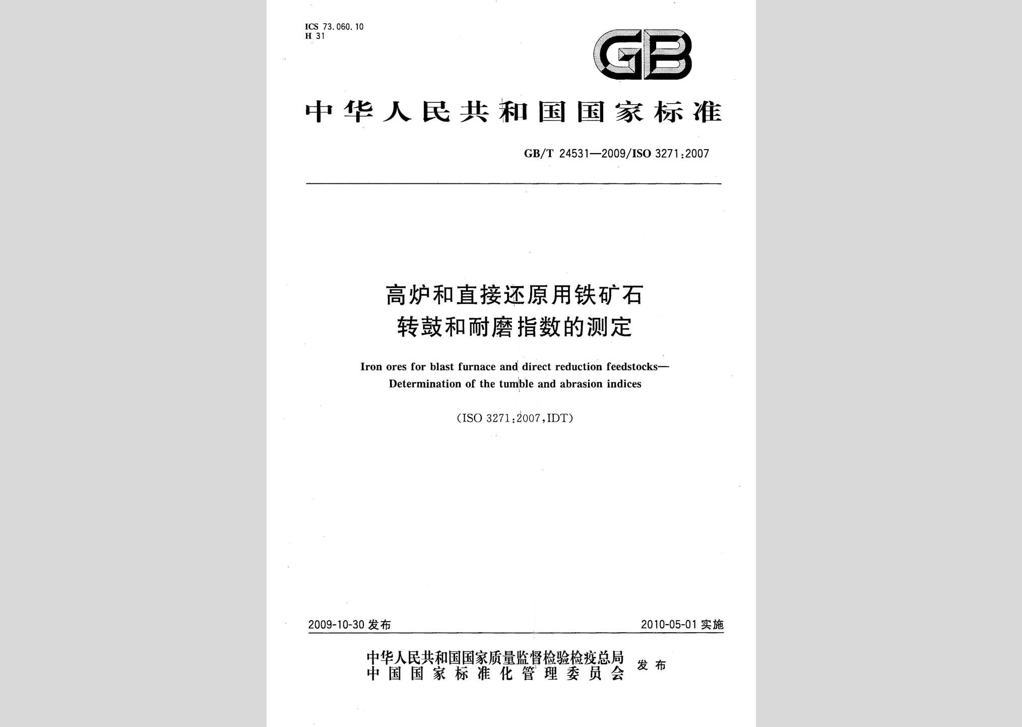 GB/T24531-2009:高炉和直接还原用铁矿石 转鼓和耐磨指数的测定现行