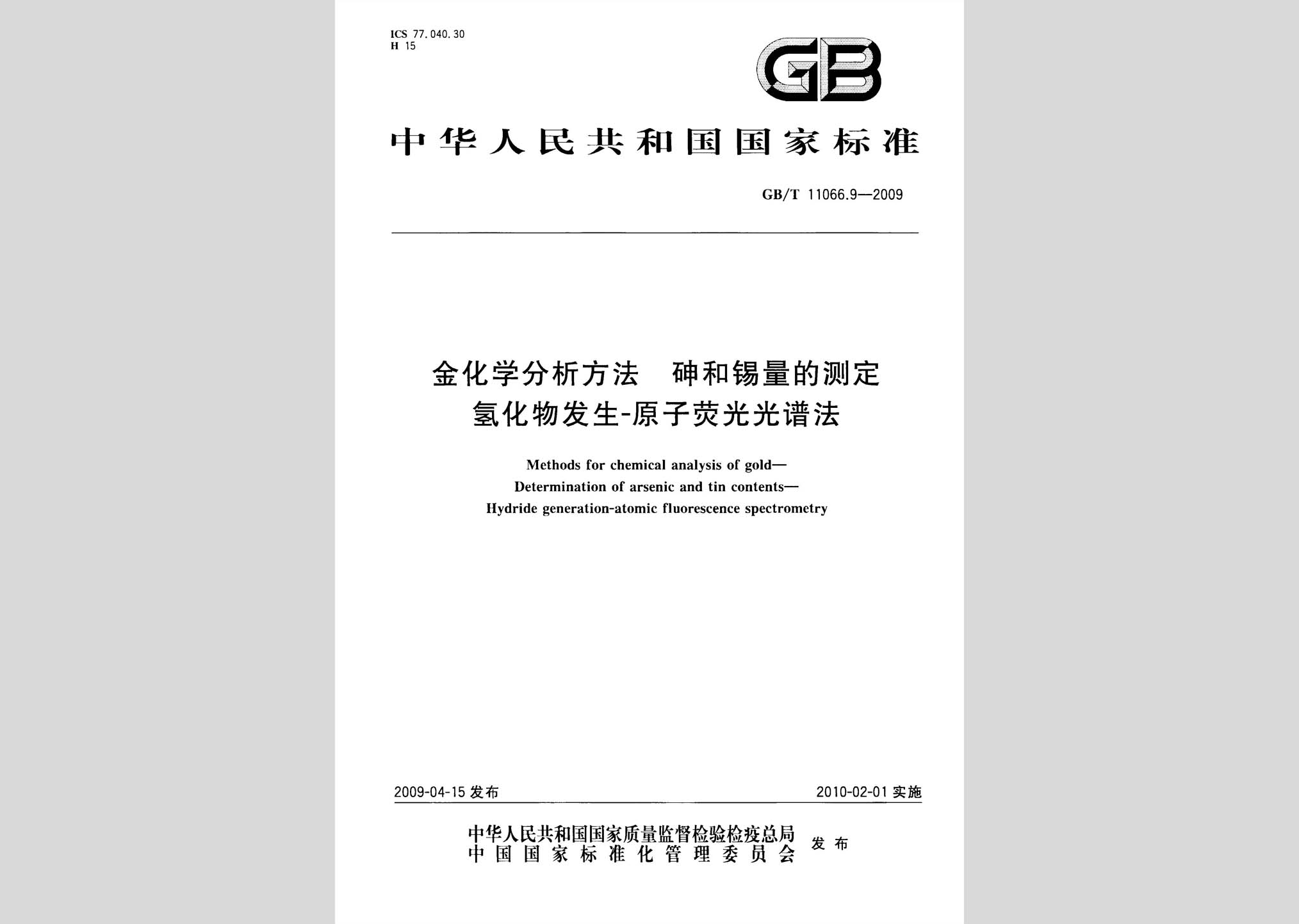 GB/T11066.9-2009:金化学分析方法砷和锡量的测定氢化物发生-原子荧光光谱法现行