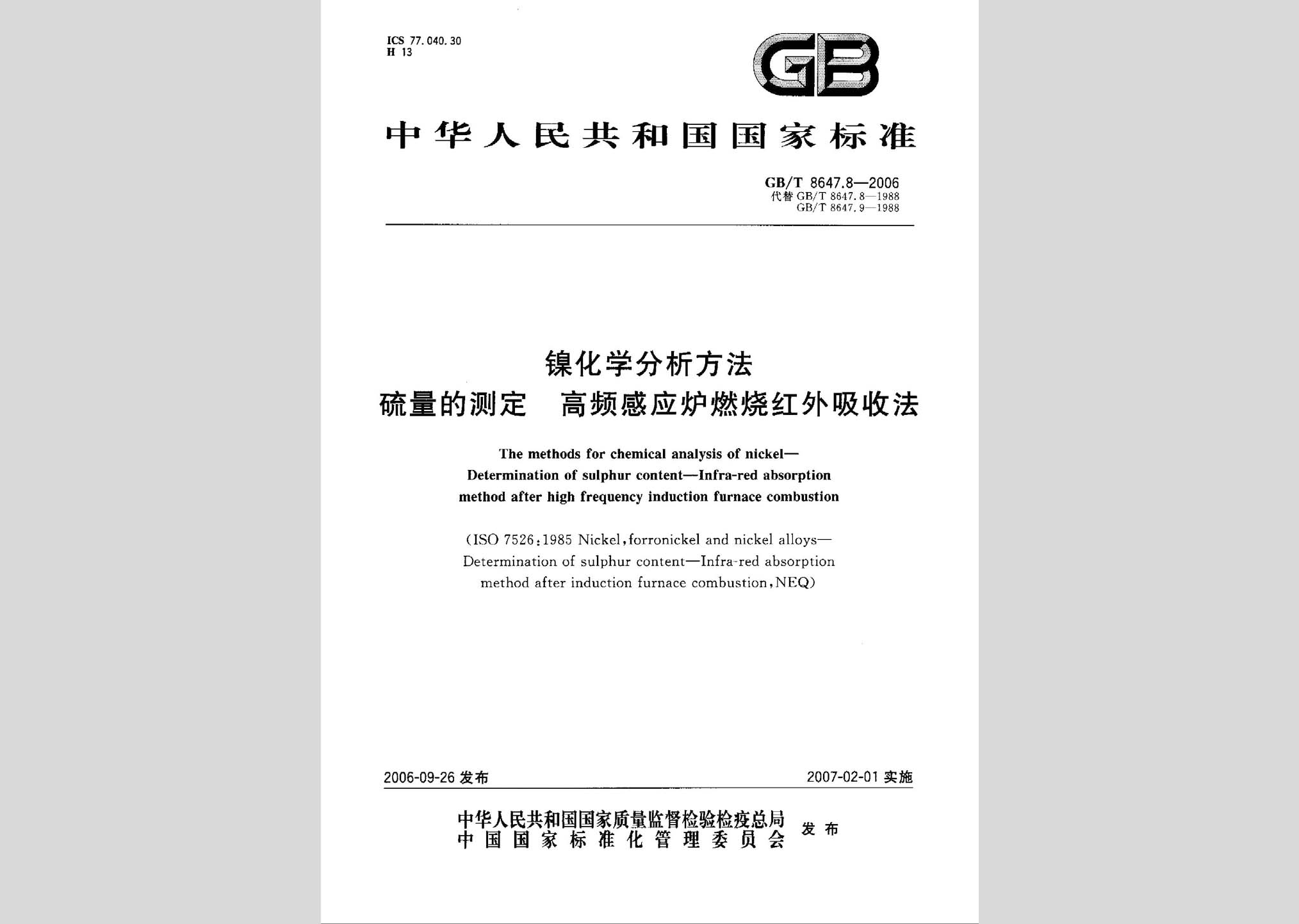 GB/T8647.8-2006:镍化学分析方法硫量的测定高频感应炉燃烧红外吸收法现行