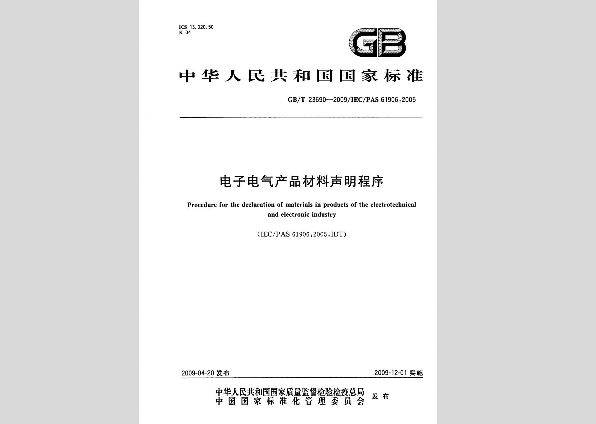 GB/T23690-2009:电子电气产品材料声明程序现行