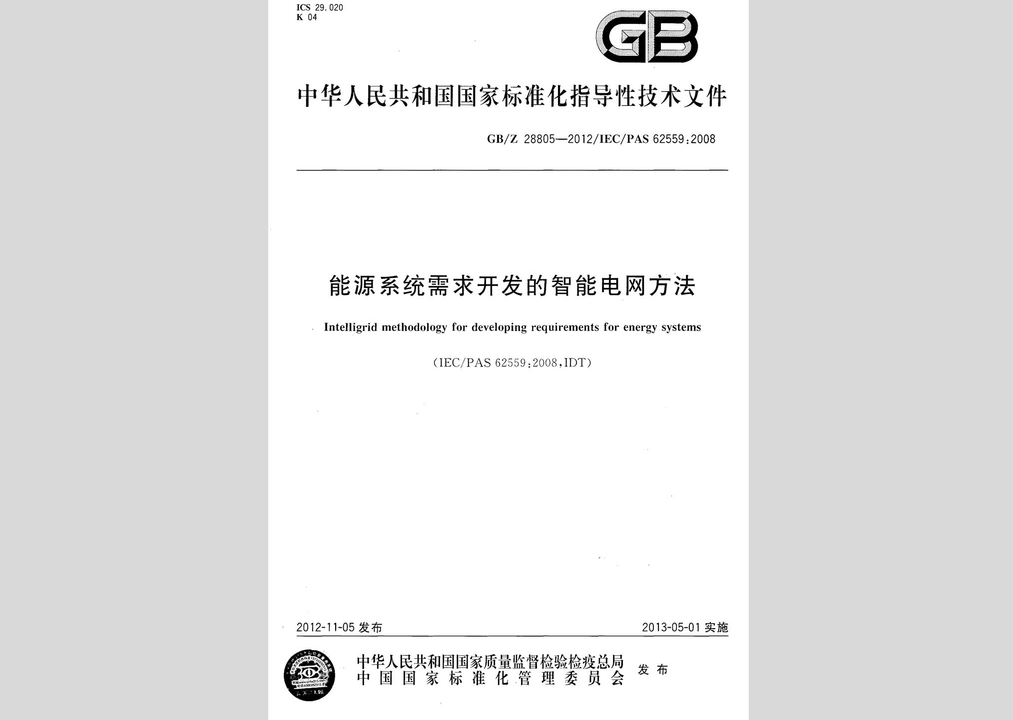 GB/Z28805-2012:能源系统需求开发的智能电网方法现行