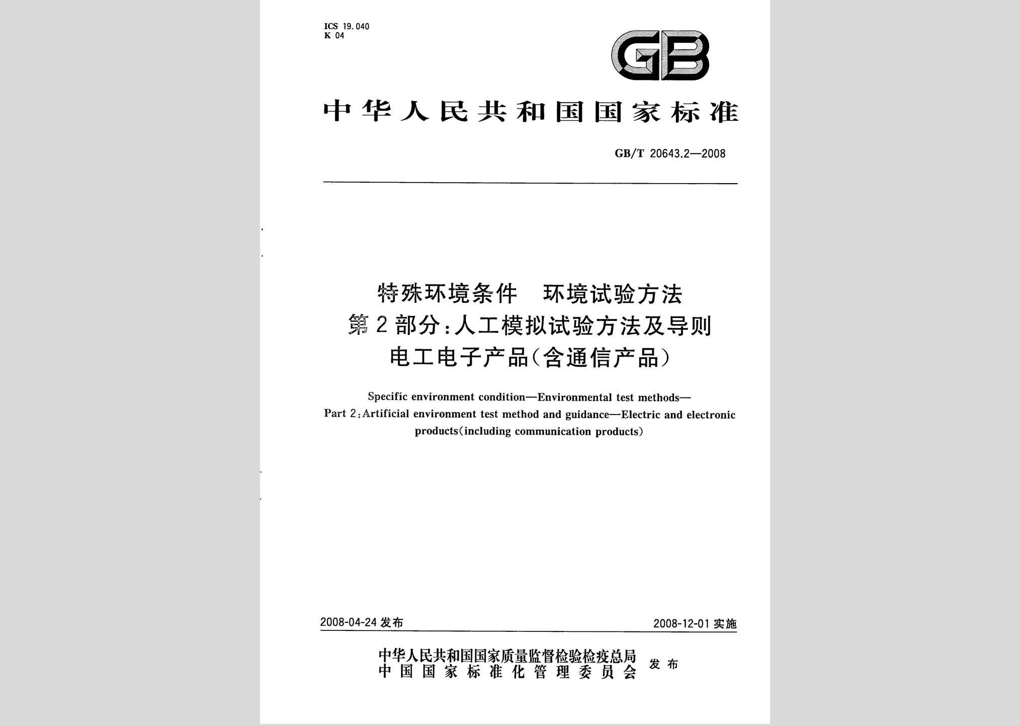 GB/T20643.2-2008:特殊环境条件环境试验方法第2部分:人工模拟试验方法及导则电工电子产品(含通信产品)现行