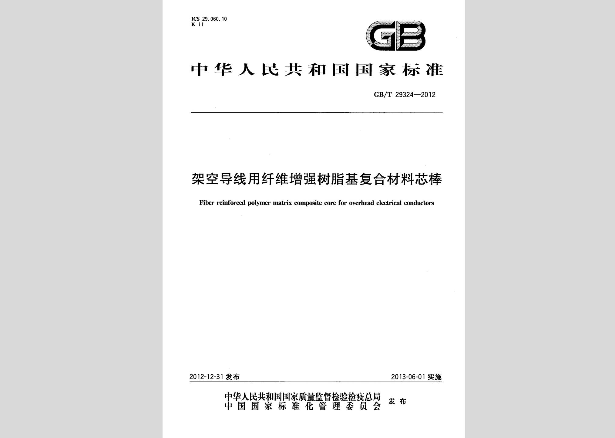 GB/T29324-2012:架空导线用纤维增强树脂基复合材料芯棒现行