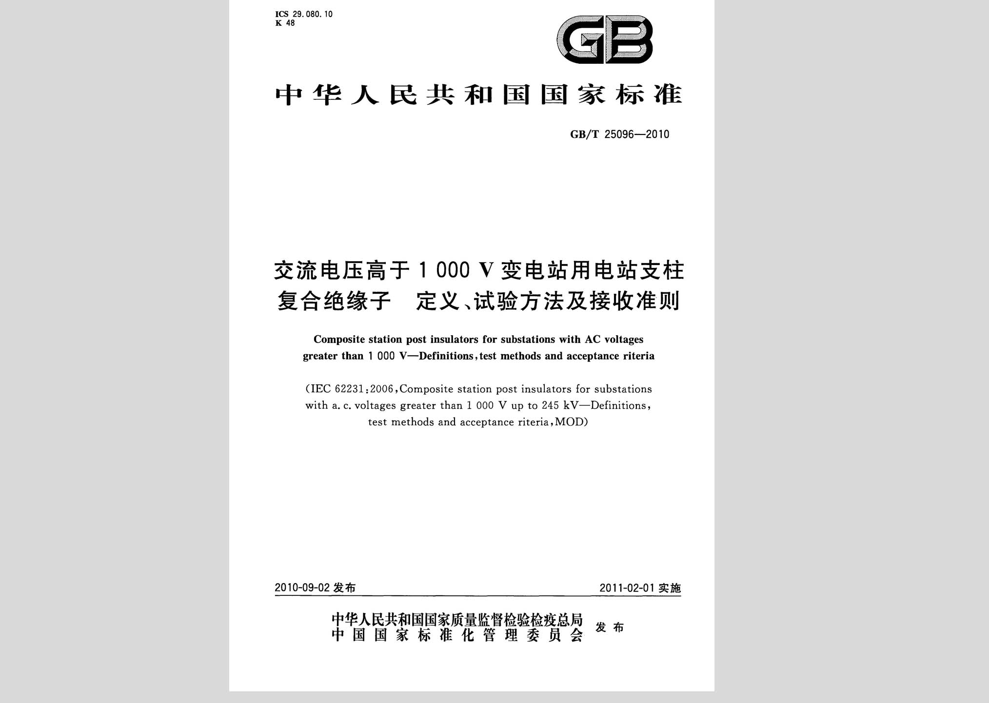 GB/T25096-2010:交流电压高于1000V变电站用电站支柱复合绝缘子定义、试验方法及接收准则现行