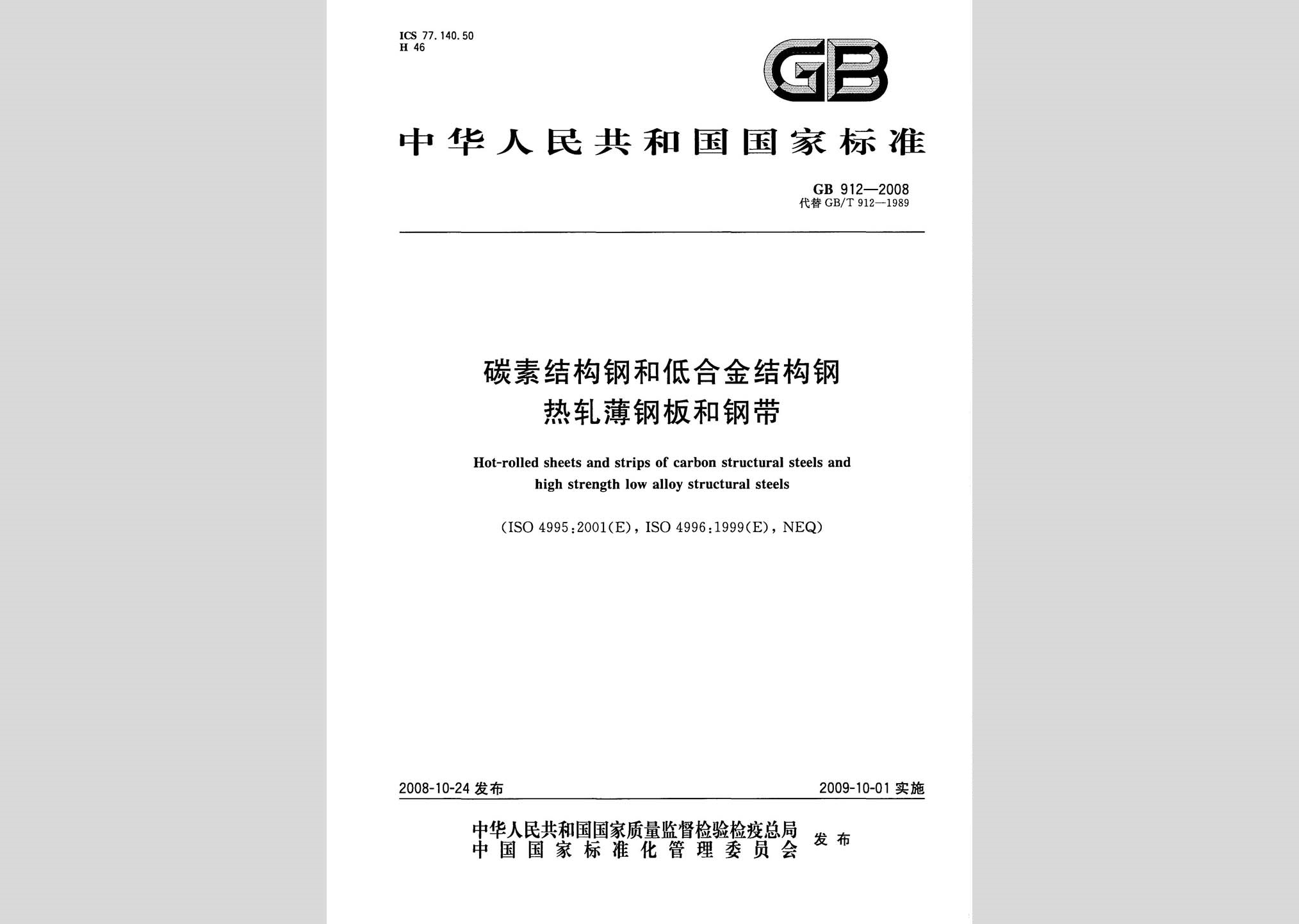 GB 912-2008:碳素结构钢和低合金结构钢热轧薄钢板和钢带废止