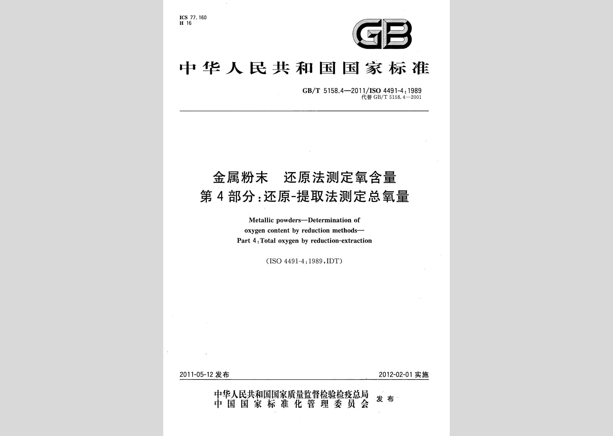 GB/T5158.4-2011:金属粉末还原法测定氧含量第4部分:还原-提取法测定总氧量现行