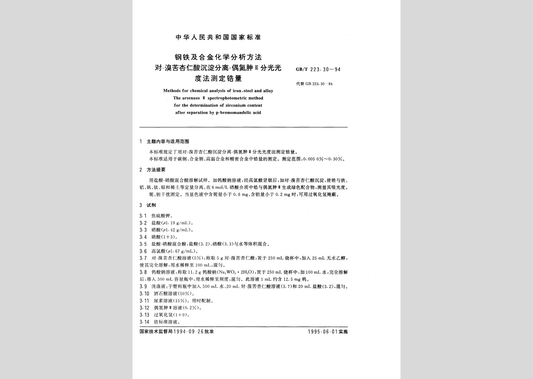 GB/T 223.30-1994:钢铁及合金镍含量的测定丁二酮肟分光光度法现行
