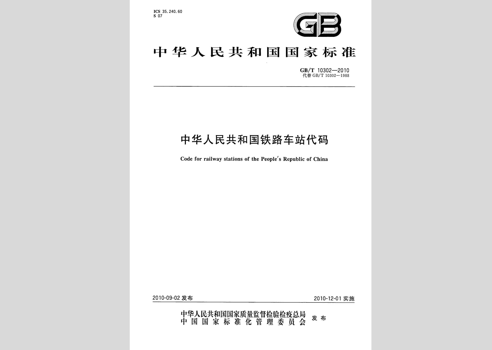GB/T10302-2010:中华人民共和国铁路车站代码废止