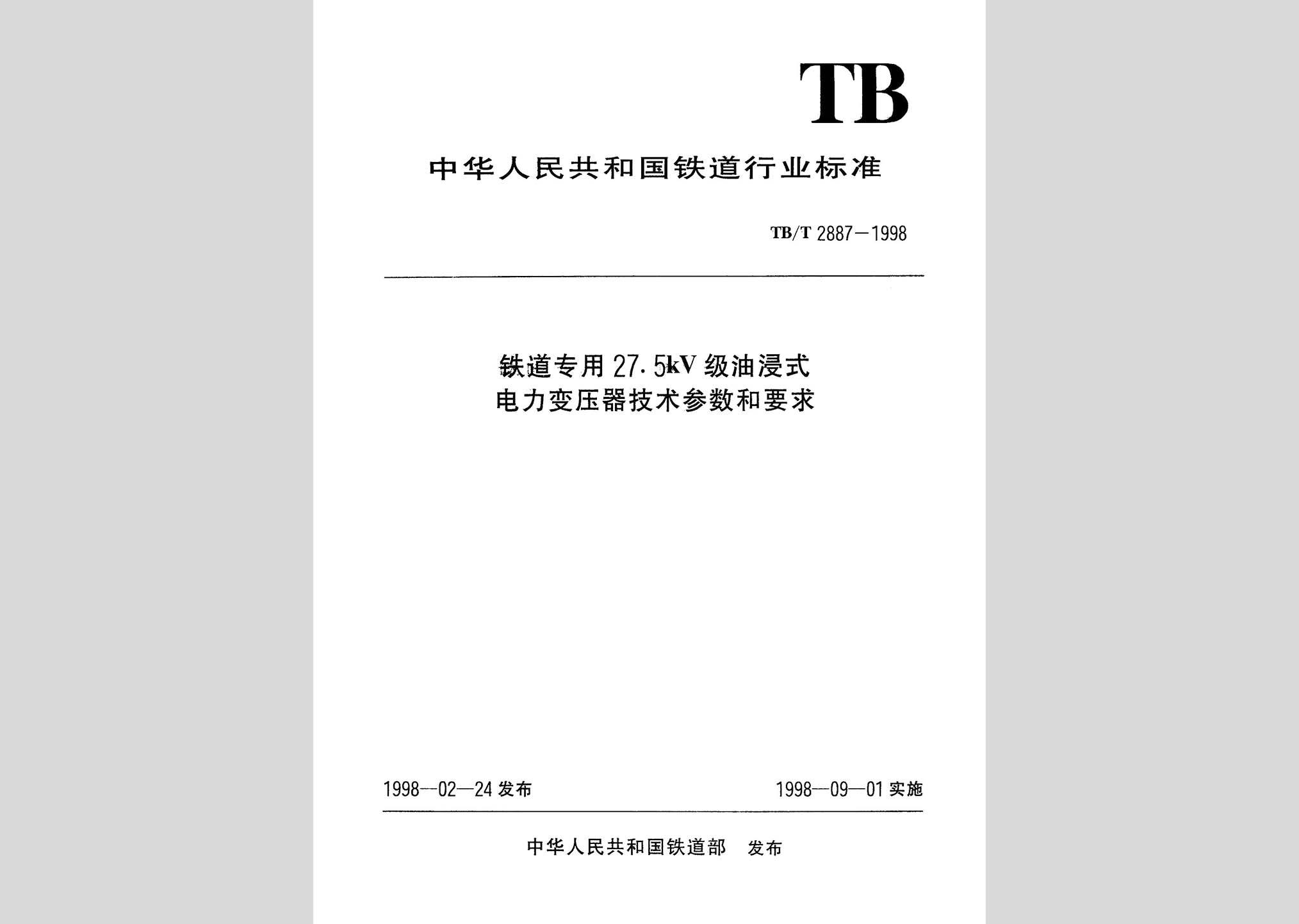 TB/T 2887-1998:铁道专用27.5kV级油浸式电力变压器技术参数和要求废止