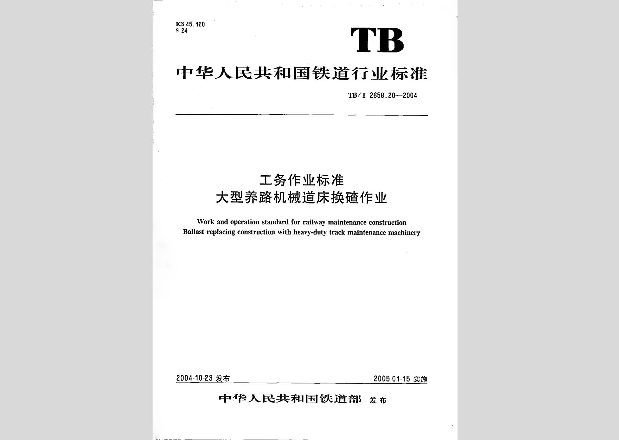 TB/T 2658.20-2004:工务作业标准大型养路机械道床换碴作业现行