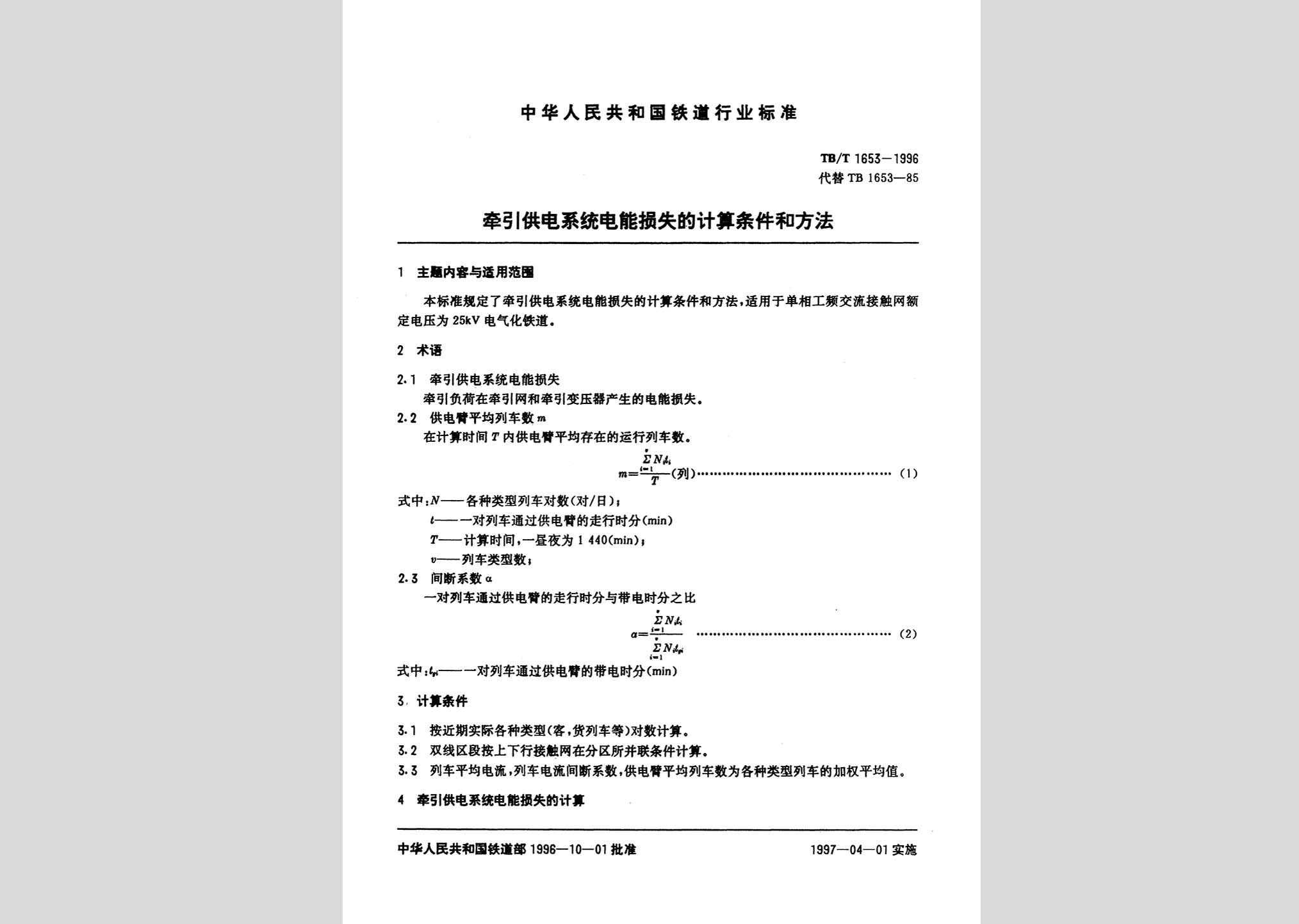 TB/T 1653-1996:牵引供电系统电能损失的计算条件和方法现行