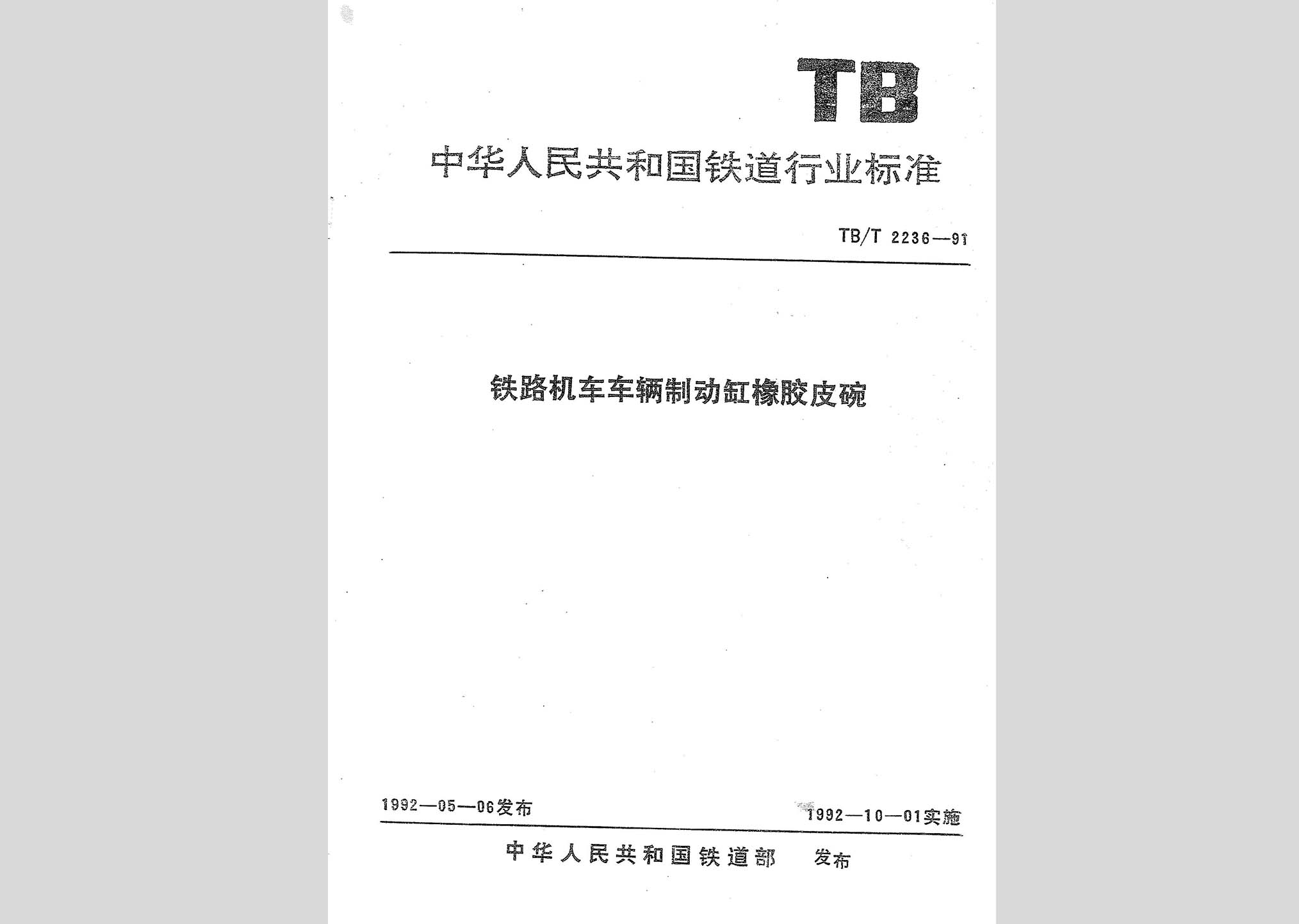 TB/T 2236-1991:铁路机车车辆制动缸橡胶皮碗现行