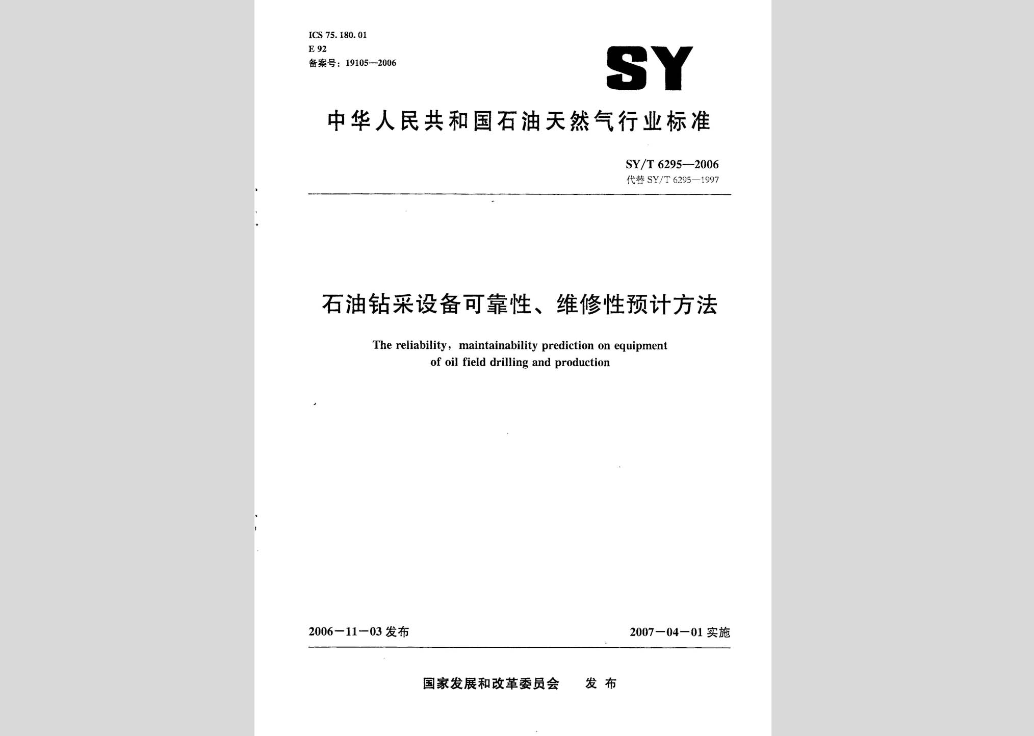 SY/T 6295-2006:石油钻采设备可靠性、维修性预计方法现行