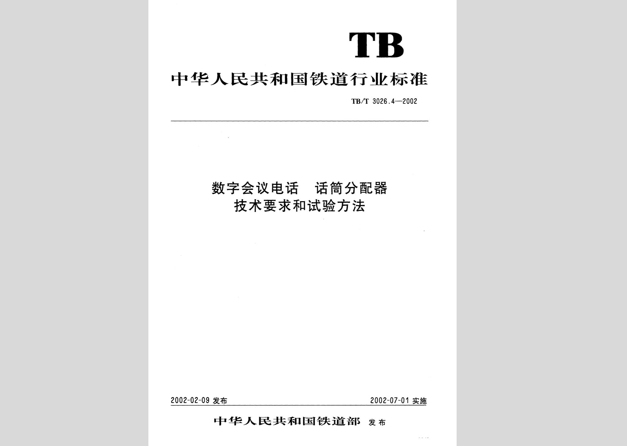 TB/T 3026.4-2002:数字会议电话话筒分配器技术要求和试验方法现行