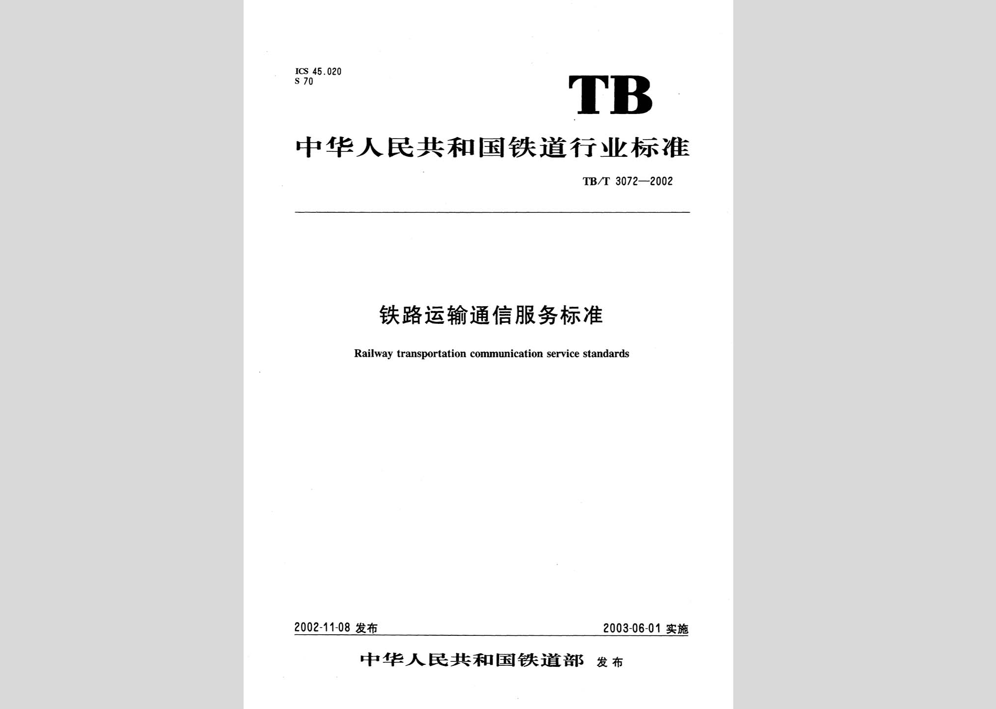 TB/T 3072-2002:铁路运输通信服务标准现行