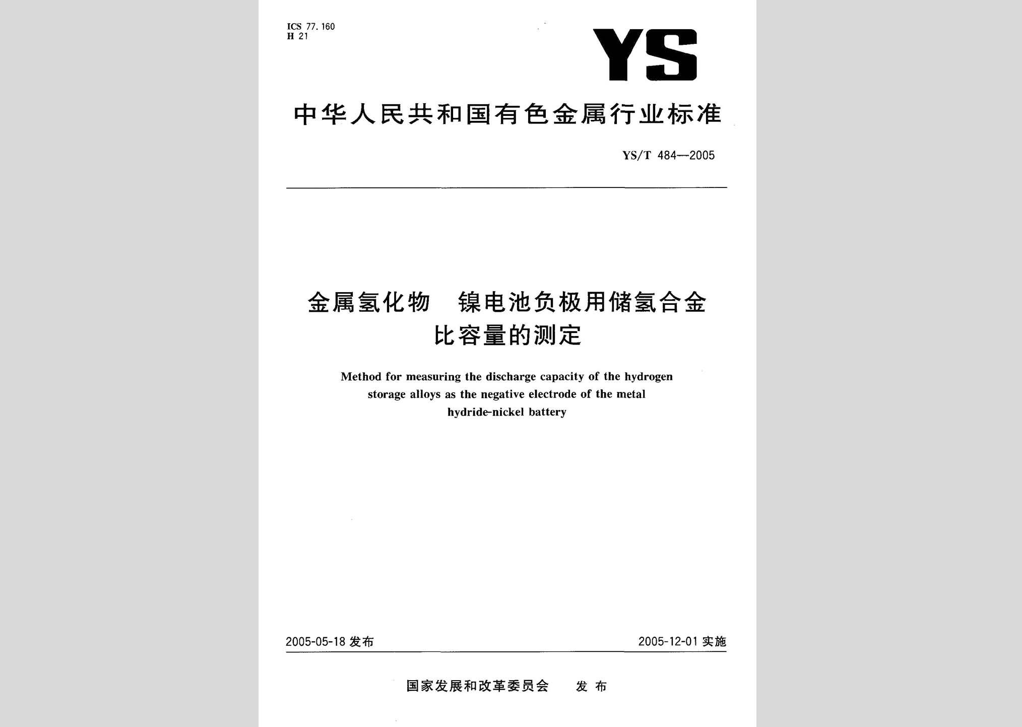 YS/T484-2005:金属氢化物镍电池负极用储氢合金比容量的测定现行