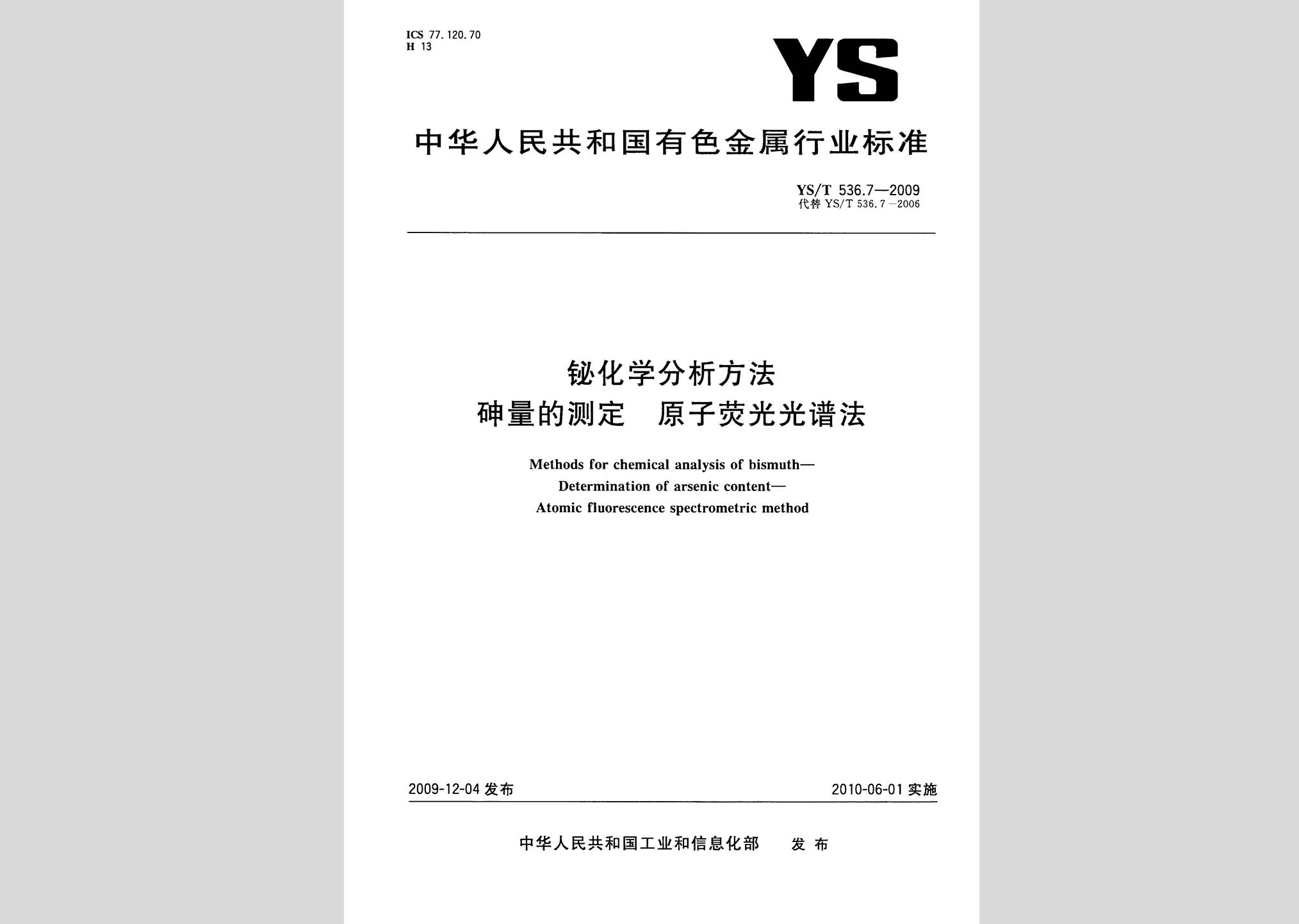 YS/T536.7-2009:铋化学分析方法砷量的测定原子荧光光谱法现行