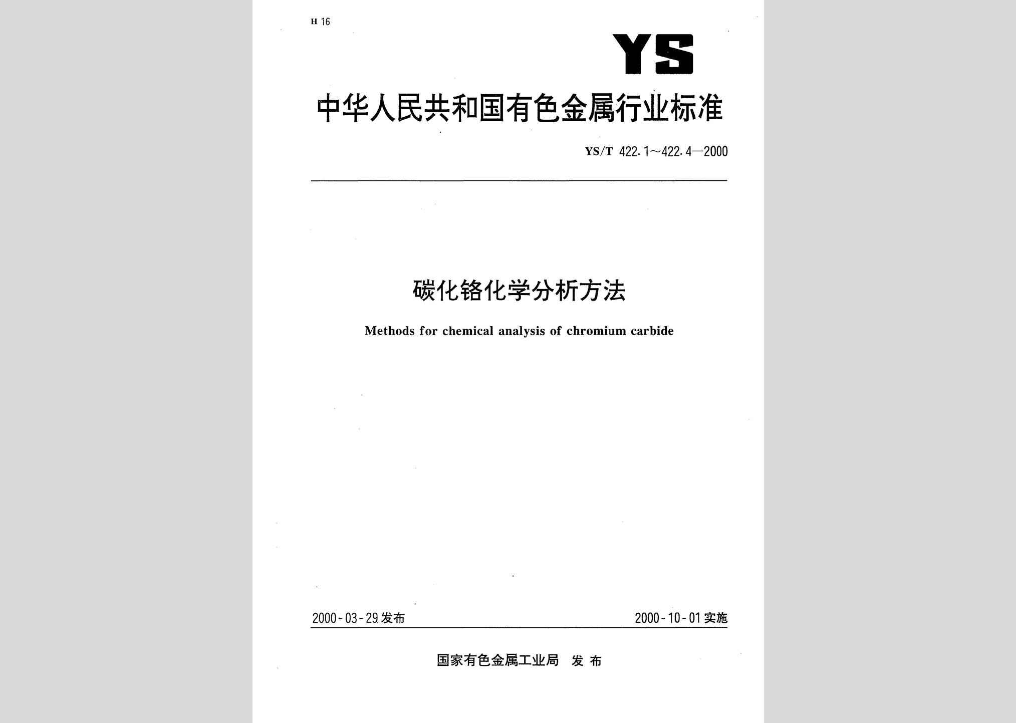YS/T 422.4-2000:碳化铬化学分析方法硅量的测定现行