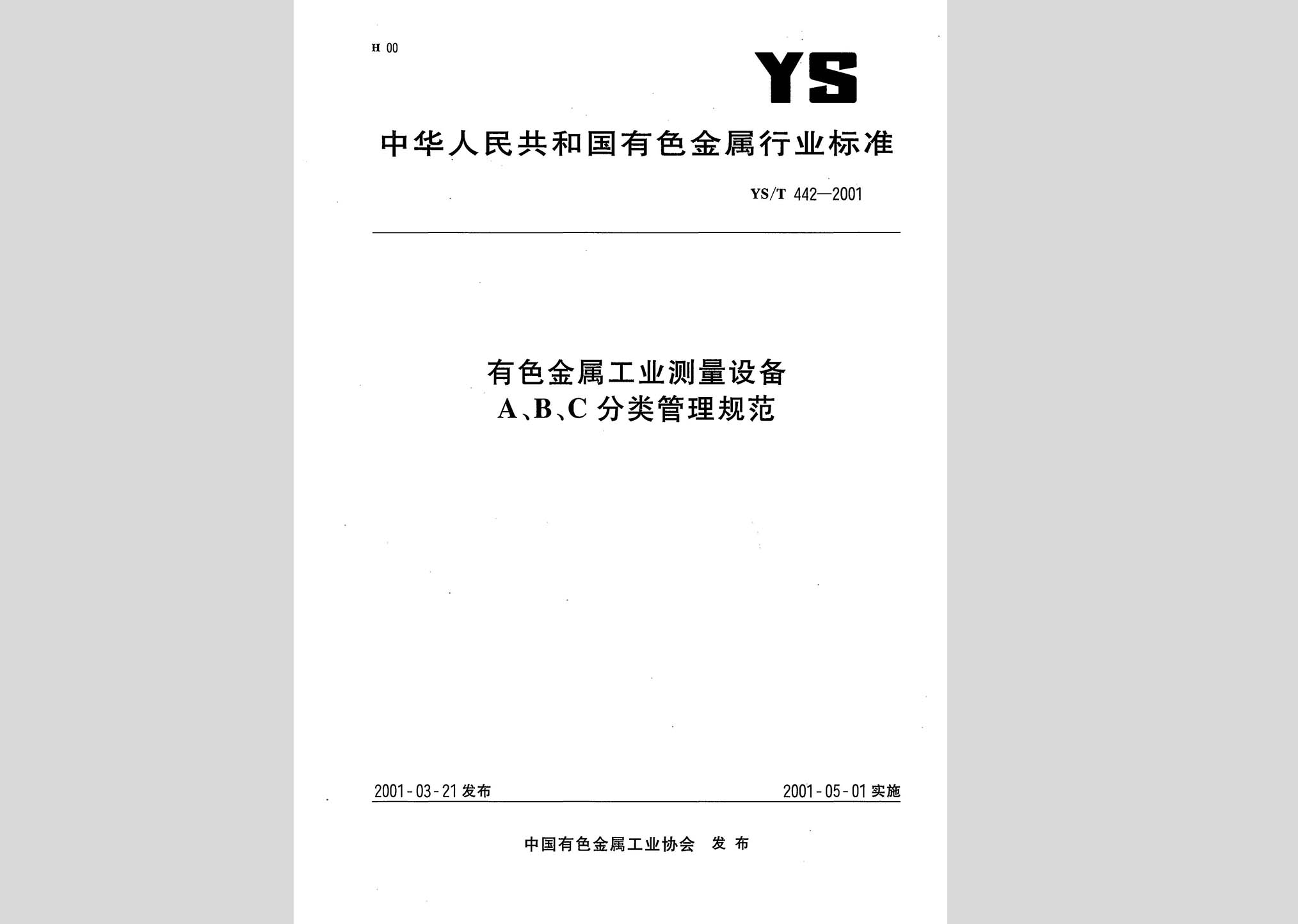 YS/T 442-2001:有色金属工业测量设备A、B、C分类管理规范现行